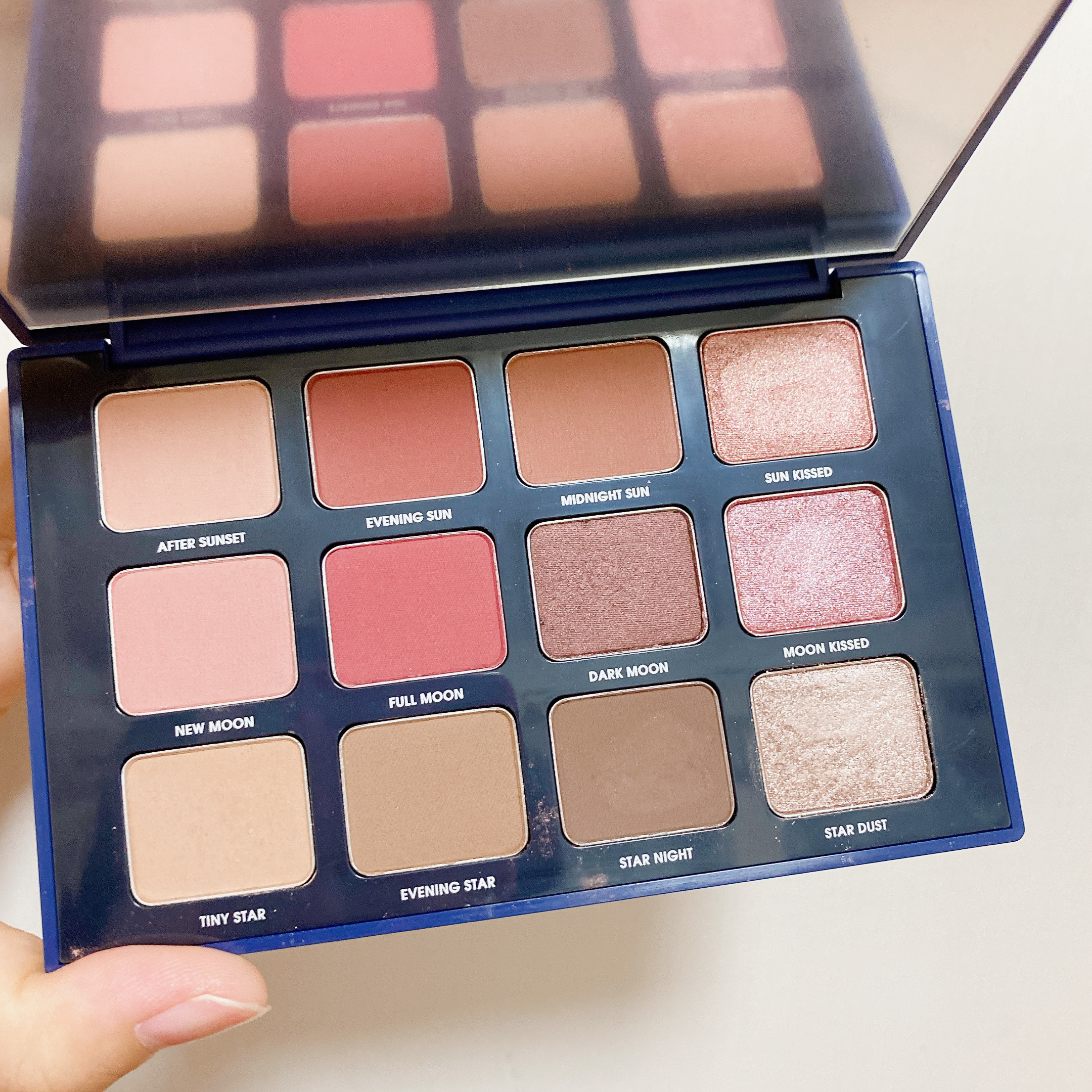 アプリコットカラーのパレット✨ マットからシマー、グリッターと様々なテクスチャーで色んなメイクが楽しめます✨ ふんわりした粉質で、淡い発色のカラーでやわらかい印象の目元に☺️ 捨て色なしなのも嬉しい✨