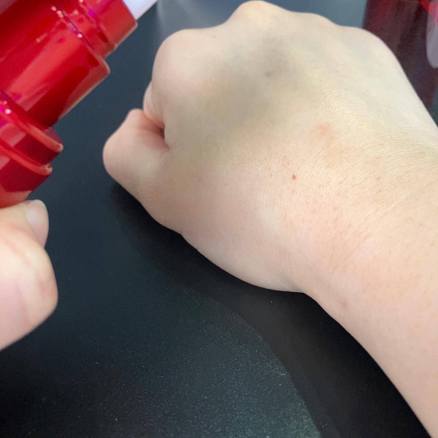 華やかな良い香り。肌に出した時は普通の下地の色なのに伸ばしていくとパール感のあるツヤツヤ肌に。 トーンアップもしてくれて肌を綺麗に魅せてくれるそれだけじゃなくしっとり感もあり。 冬場は乾燥で化粧が崩れやすいのでとってもありがたいプライマー。