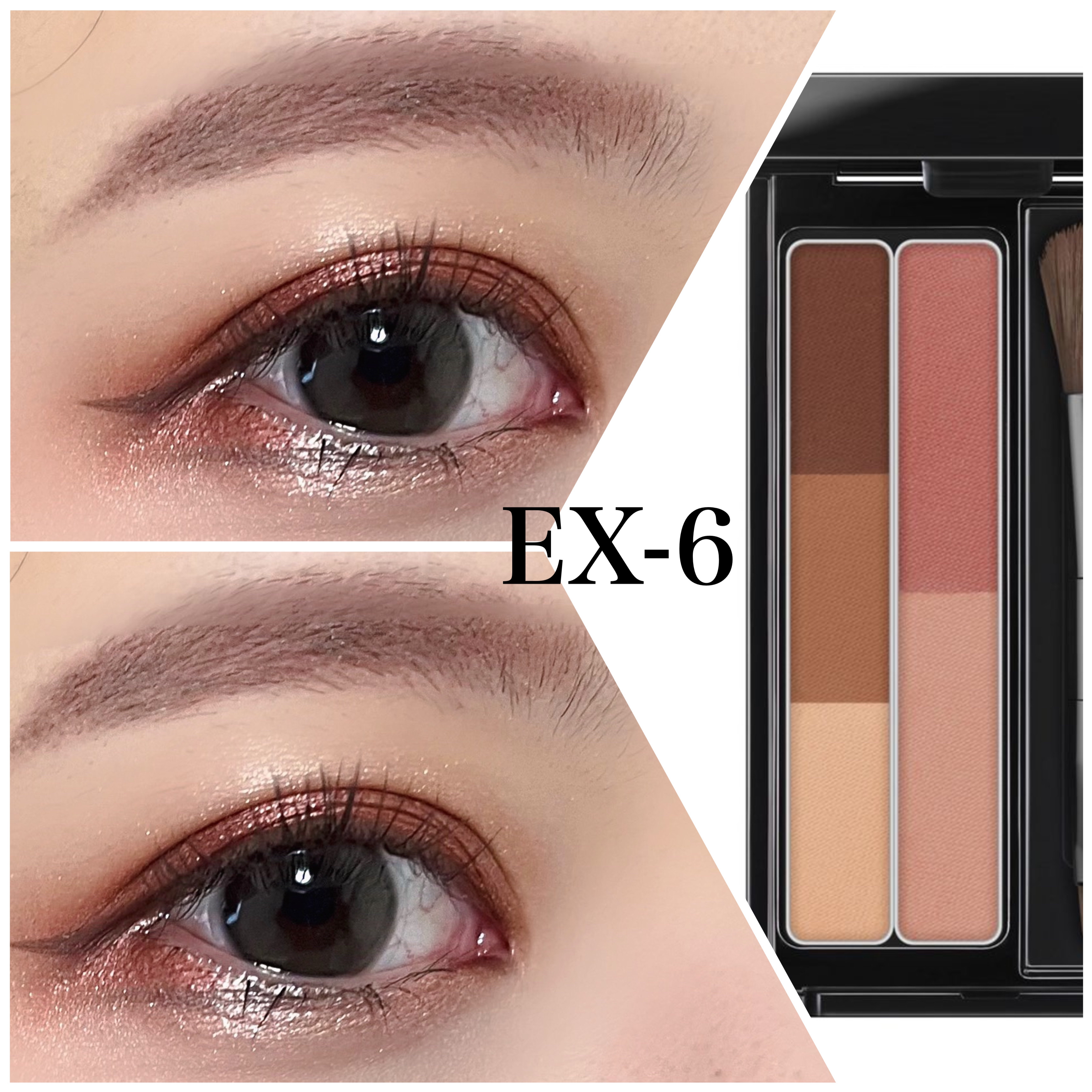 - <EX-4 ライトブラウン系×キャロットオレンジ> タルク、マイカ、カオリン、ヒドロキシステアリン酸エチルヘキシル、フェニルトリメチコン、ジフェニルシロキシフェニルトリメチコン、ジメチコン、ステアロイルグルタミン酸2Na、ラウロイルグルタミン酸ジ(フィトステリル/オクチルドデシル)、リンゴ酸ジイソステアリル、トリイソステアリン酸イソプロピルチタン、水酸化Al、ラウロイルアスパラギン酸Na、ミリスチン酸亜鉛、塩化亜鉛、エチルパラベン、メチルパラベン、デヒドロ酢酸Na、(+/-)アルミナ、グンジョウ、シリカ、酸化チタン、酸化鉄、酸化スズ、赤226 <EX-5 ブラウン系×ライラックパープル> タルク、マイカ、合成フルオロフロゴパイト、カオリン、ヒドロキシステアリン酸エチルヘキシル、フェニルトリメチコン、ジフェニルシロキシフェニルトリメチコン、ジメチコン、ステアロイルグルタミン酸2Na、ラウロイルグルタミン酸ジ(フィトステリル/オクチルドデシル)、リンゴ酸ジイソステアリル、トリイソステアリン酸イソプロピルチタン、水酸化Al、ラウロイルリシン、ラウロイルアスパラギン酸Na、ミリスチン酸亜鉛、塩化亜鉛、エチルパラベン、メチルパラベン、デヒドロ酢酸Na、(+/-)アルミナ、グンジョウ、シリカ、酸化チタン、酸化鉄、酸化スズ、赤226 <EX-6 レッドブラウン系×ストロベリーレッド> タルク、マイカ、合成フルオロフロゴパイト、ジフェニルシロキシフェニルトリメチコン、ヒドロキシステアリン酸エチルヘキシル、カオリン、ジメチコン、ステアロイルグルタミン酸2Na、ラウロイルグルタミン酸ジ(フィトステリル/オクチルドデシル)、リンゴ酸ジイソステアリル、トリイソステアリン酸イソプロピルチタン、水酸化Al、ラウロイルアスパラギン酸Na、ミリスチン酸亜鉛、塩化亜鉛、エチルパラベン、メチルパラベン、デヒドロ酢酸Na、(+/-)アルミナ、グンジョウ、シリカ、酸化チタン、酸化鉄、酸化スズ、赤226
