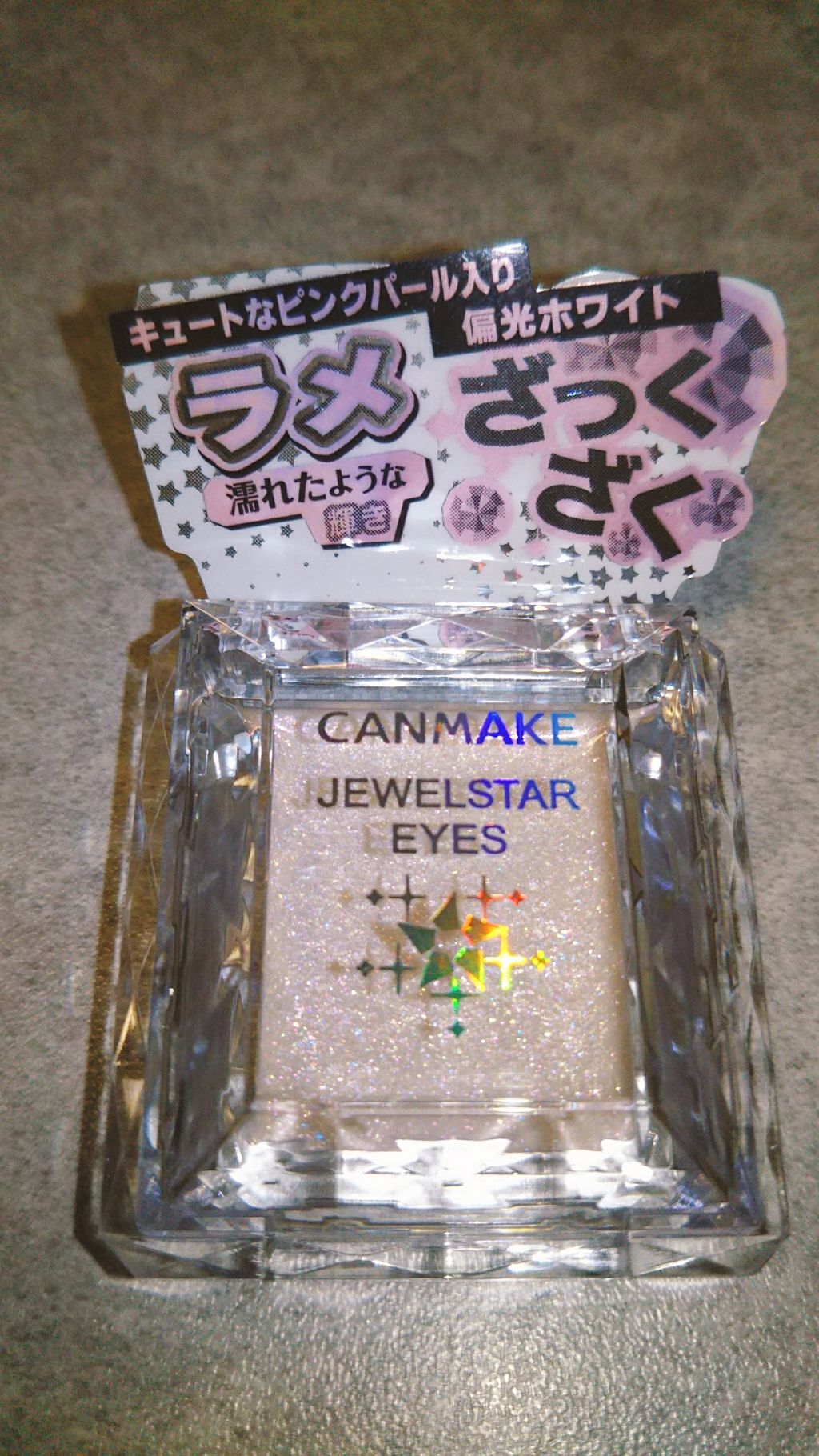 最近投稿頻度落ちてて…😅4日ぶりの投稿です!今回は、キャンメイクジュエルスターアイズの紹介です😆この商品は普段しているアイシャドウの上から少し付けたり、涙袋を作ってから少し付けるものです✨ティッシュやタオルで拭いてもキラキラはあまり取れないで...
