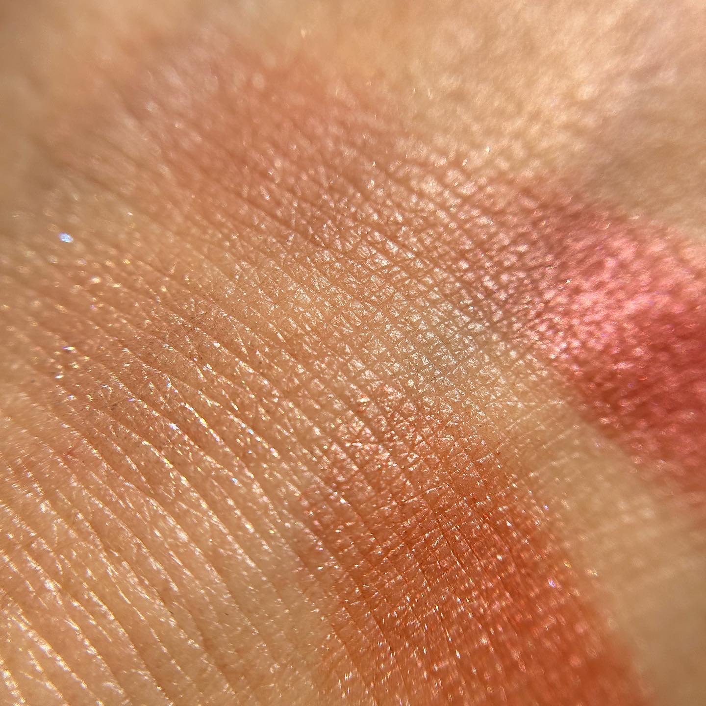 ビーアイドルの中で今までで1番好きかも❤️ 粉質は結構柔らかめ!スウォッチみたら淡い感じするけど目元に塗ると思ったよりしっかり発色🤗 ラメの粒は大きめかも🙋♀️ だからやっぱり頬にラメはちょっと落ちるよね😅 配色はどれ使ってもどの組み合わせでも可愛いんだよな〜😌❤️