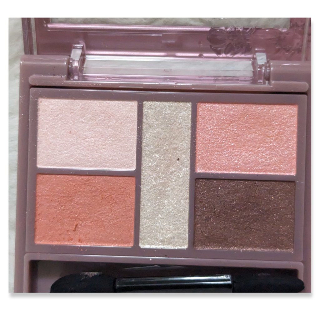 深みのあるくすみ系カラーが魅力の5色入りアイシャドウパレット。1つで2つの異なるメイクスタイルを楽しめるのが特徴で、スモーキーで落ち着いたトーンの色味が揃っています。 ラメは華やかだけど控えめで、普段使いにも特別な場面にも合わせやすいです。 粉質はしっとりしていてまぶたに密着しやすいです。プチプラながら発色も良く、コスパの高さがとにかく嬉しい♪