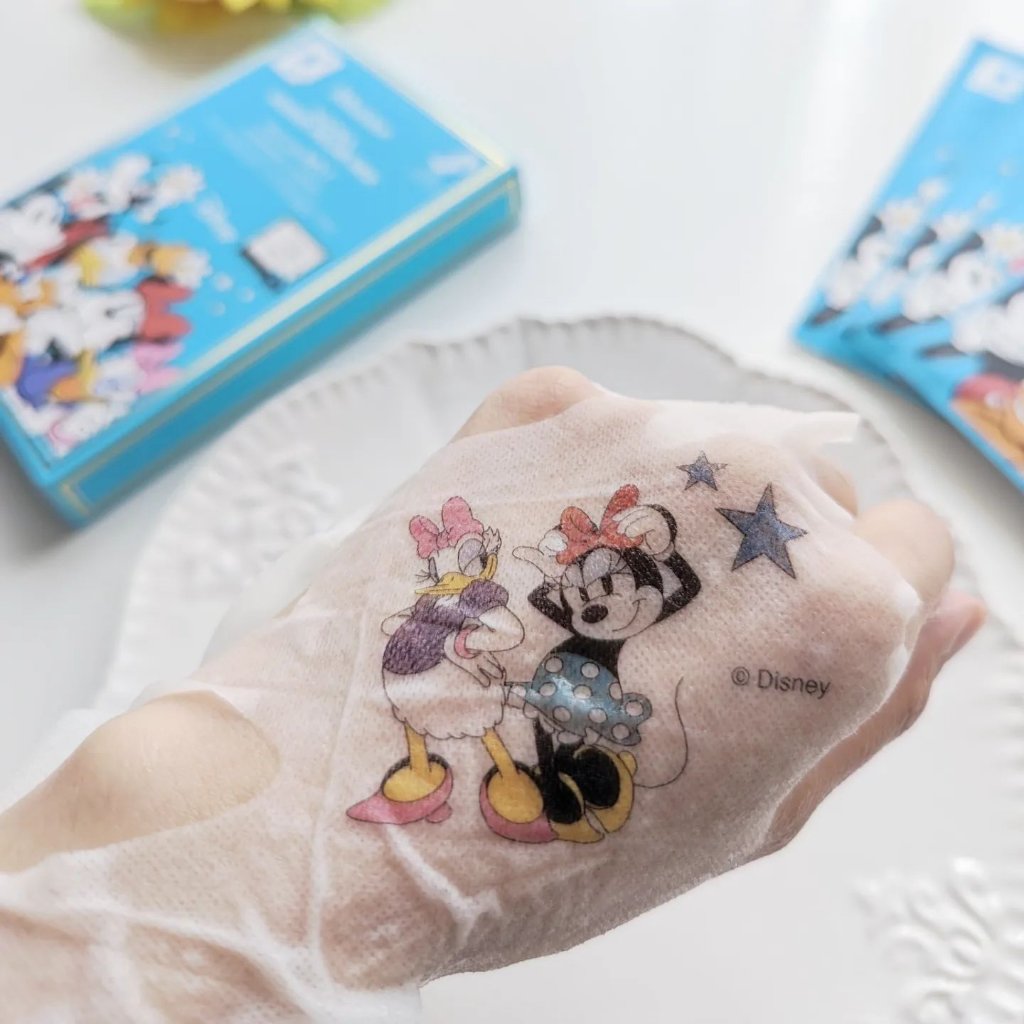 - 9種のヒアルロン酸配合*のエッセンスが乾燥したお肌にしっかり保湿感を与えます。 *ヒアルロン酸Na、加水分解ヒアルロン酸Na、加水分解ヒアルロン酸、アセチルヒアルロン酸Na、ヒアルロン酸ヒドロキシプロピルトリモニウム、ヒアルロン酸ジメチルシラノール、ヒアルロン酸クロスポリマーNa、ヒアルロン酸、ヒアルロン酸K(全て整肌成分) 集中保湿ケア エッセンスをたっぷり含んだシートマスクがお肌の角質層に浸透します。 9種のヒアルロン酸*&N.M.F(天然保湿因子)アミノ酸※ ヒアルロン酸とアミノ酸を配合、集中保湿でお肌の潤い長続き。 ※アルギニン、グリシン、アラニン、セリン、バリン、トレオニン、プロリン、イソロイシン、フェニルアラニン、ヒスチジン、アスパラギン酸(全て整肌成分) プリンティングエアホールシート 愛らしいディズニーキャラクターがプリントされたエアホールシートで遊び心のあるスペシャルスキンケア