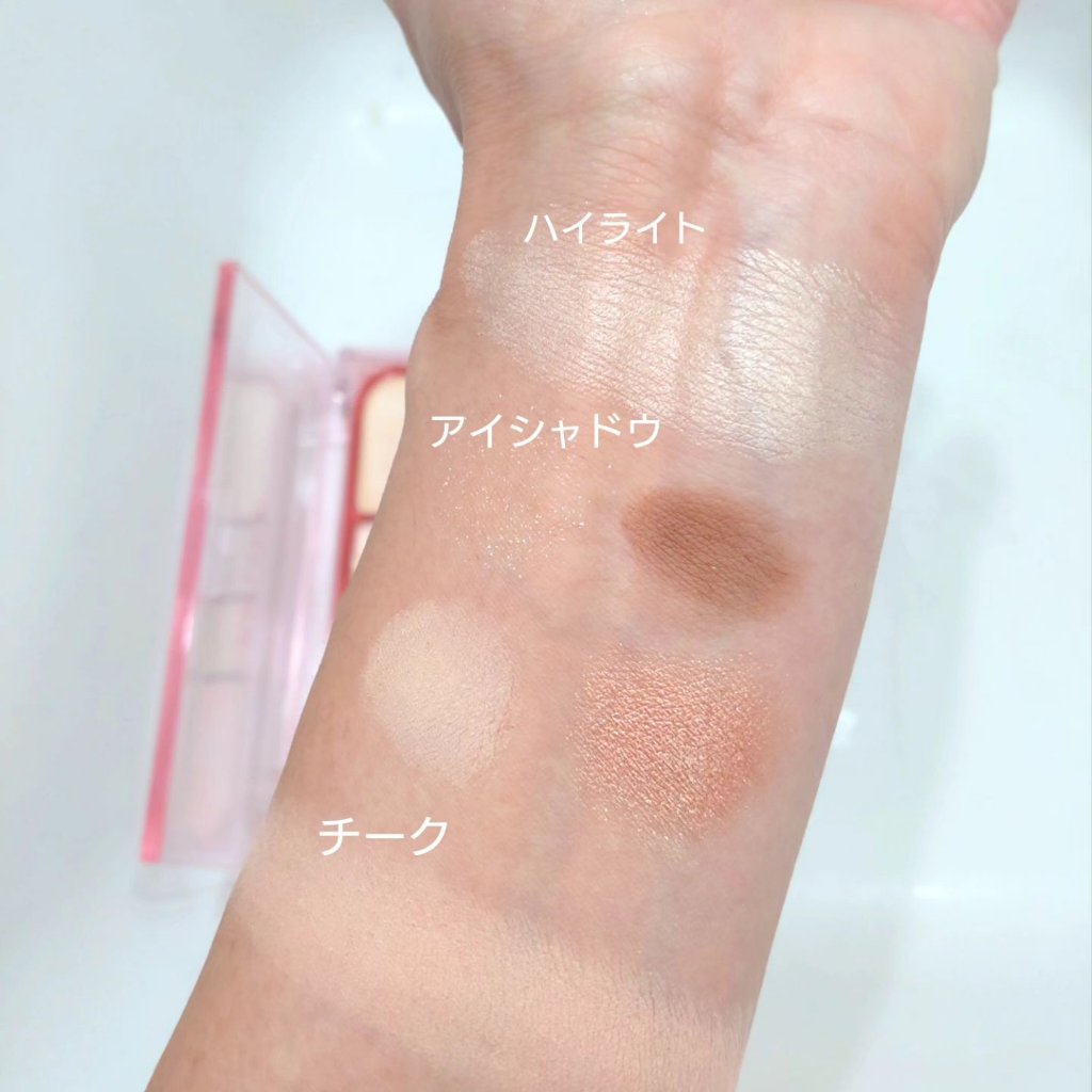粉質が柔らかできめ細かくマルチなブラウンが使いやすい ほどよいラメ感がデイリーメイクにぴったり 07 サイレントベージュ 王道ブラウンはこちら 赤みや黄みがほんのり入っていて失敗しにくい組み合わせ 08 サンライズオレンジ 明るめだけどブラシでフワッと乗せると肌になじむカラー 左上は見た目ほど黄色が発色しないのでゴールドラメとして使えます