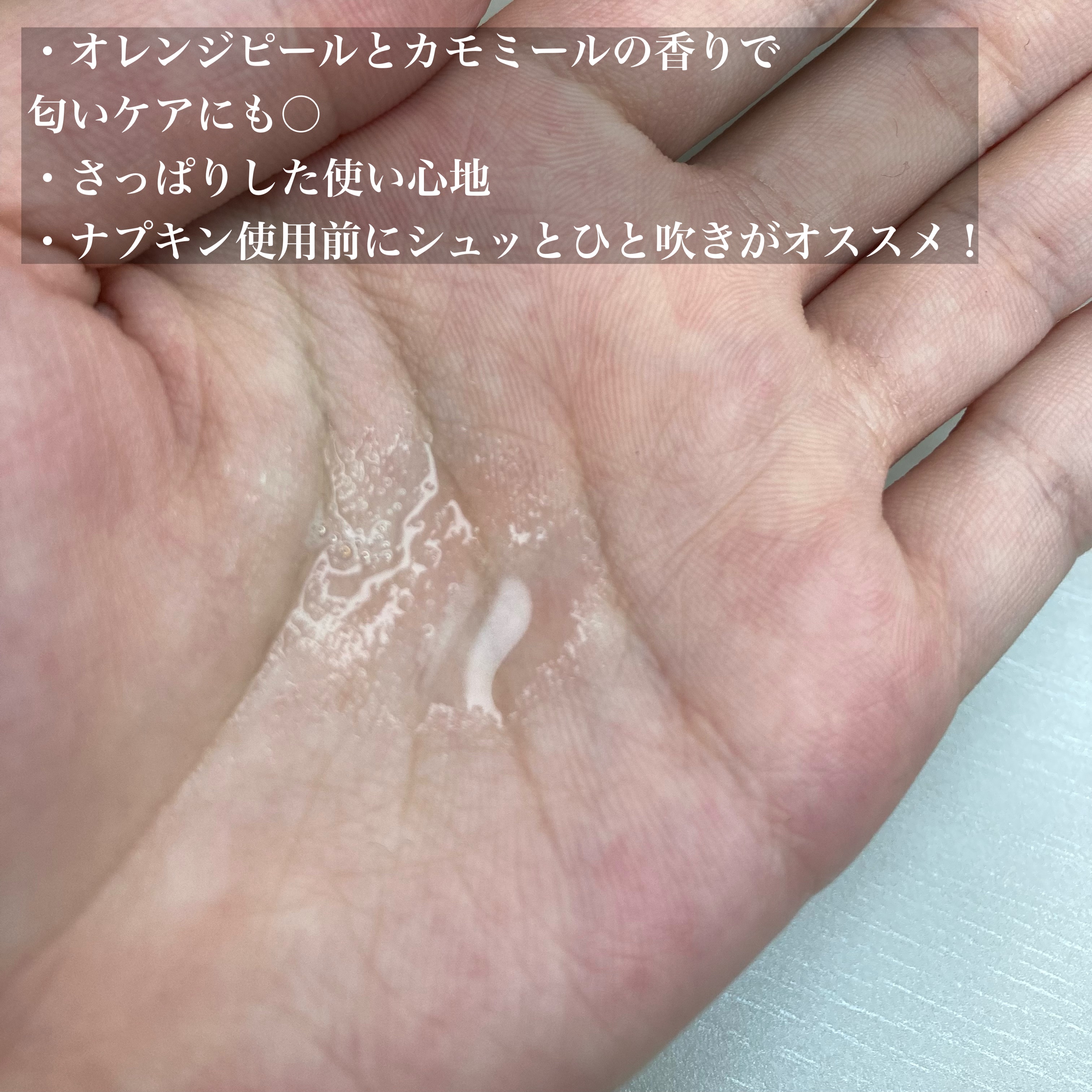 - 日常的なデリケートゾーンの不快感※1に、携帯できるミストで簡単拭き取りケア。 トイレットペーパーなどに吹きかけて、気になる部分を拭き取るだけ。 さわやかなオレンジピールとカモミールの香りをメインに、 8種の天然精油配合※2 でデリケートゾーンの気になるニオイもカバーします。 ※1:汚れによる ※2:オレンジ果皮油、ティーツリー葉油、エンピツビャクシン油、 グレープフルーツ果皮油、ラベンダー油、ハッカ油、セイヨウハッカ油、ローマカミツレ花油