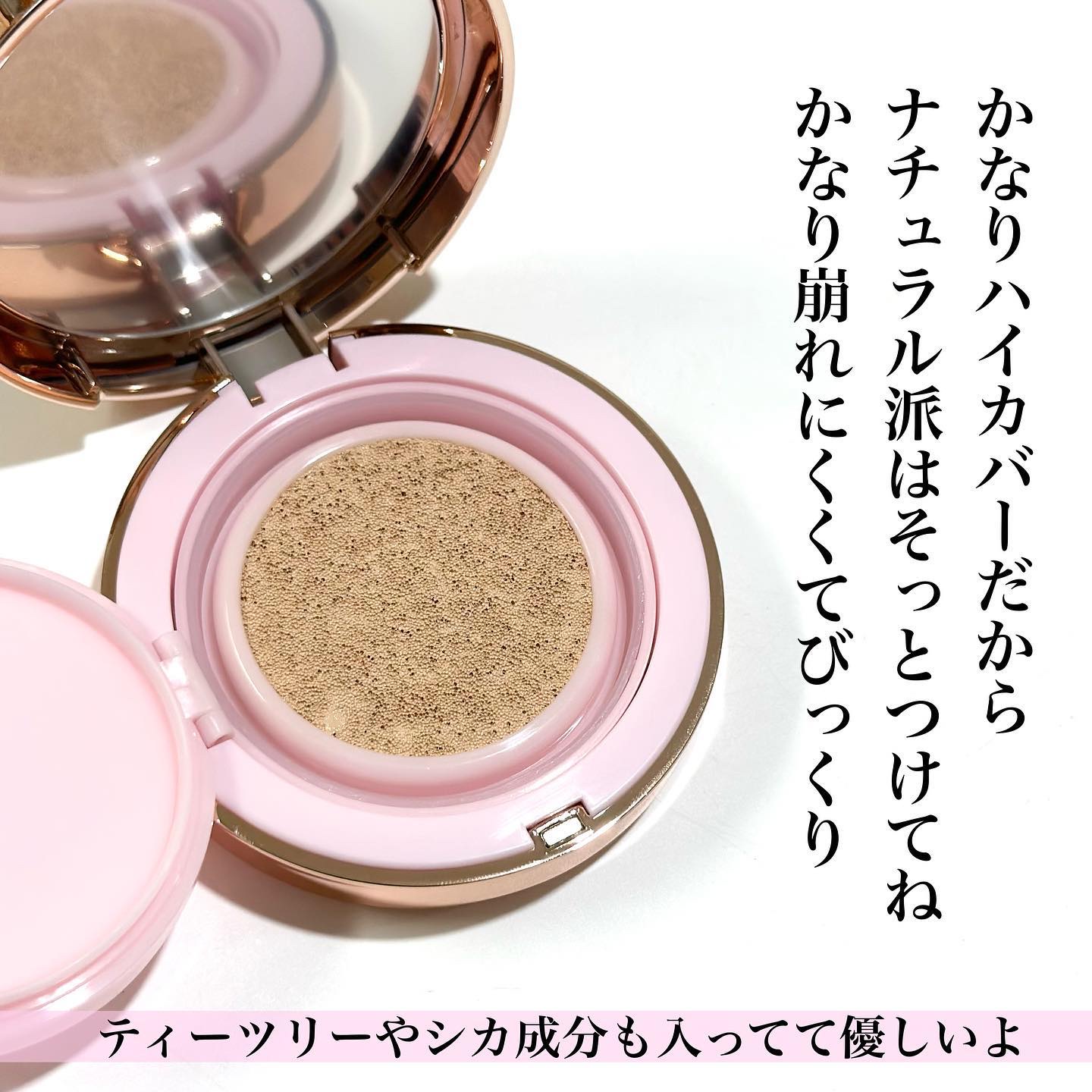 ケアしながらメイクアップ!夏にも冬にも使えるクッションファンデーション APLIN ピンクティーツリープライマーカバークッション 密着力がすごくて、夏の崩れやすい時期も汚く崩れる事がなかったし、乾燥の気になる今は、パサつきを感じずに両方の季節で使い心地が良かったです♪ ピンクのパッケージも可愛くてお気に入り💓 これでティーツリーやシカでケアができてるのならかなりのいいアイテムかな思いました!