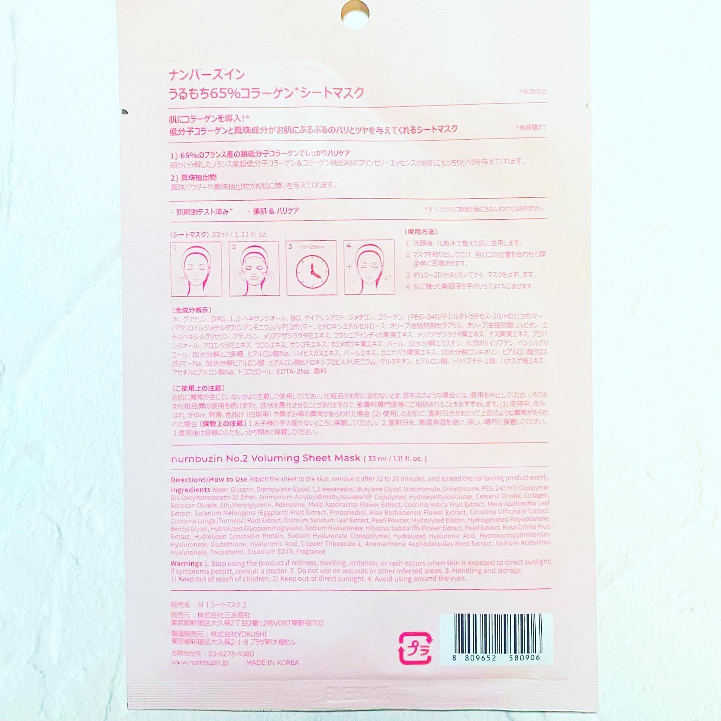 商品詳細情報numbuzin 2番 うるもち65%コラーゲンシートマスク