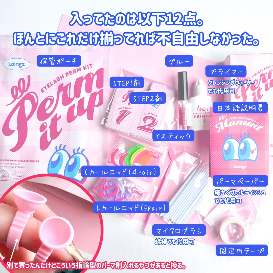 自宅でまつ毛パーマが出来るよ✨️ 必要な物が全て揃っていて、日本語の説明書付き。 CカールとLカールの選べるロッドにサイズも豊富🫶 翌日もしっかりカールしていて嬉しいです🙌