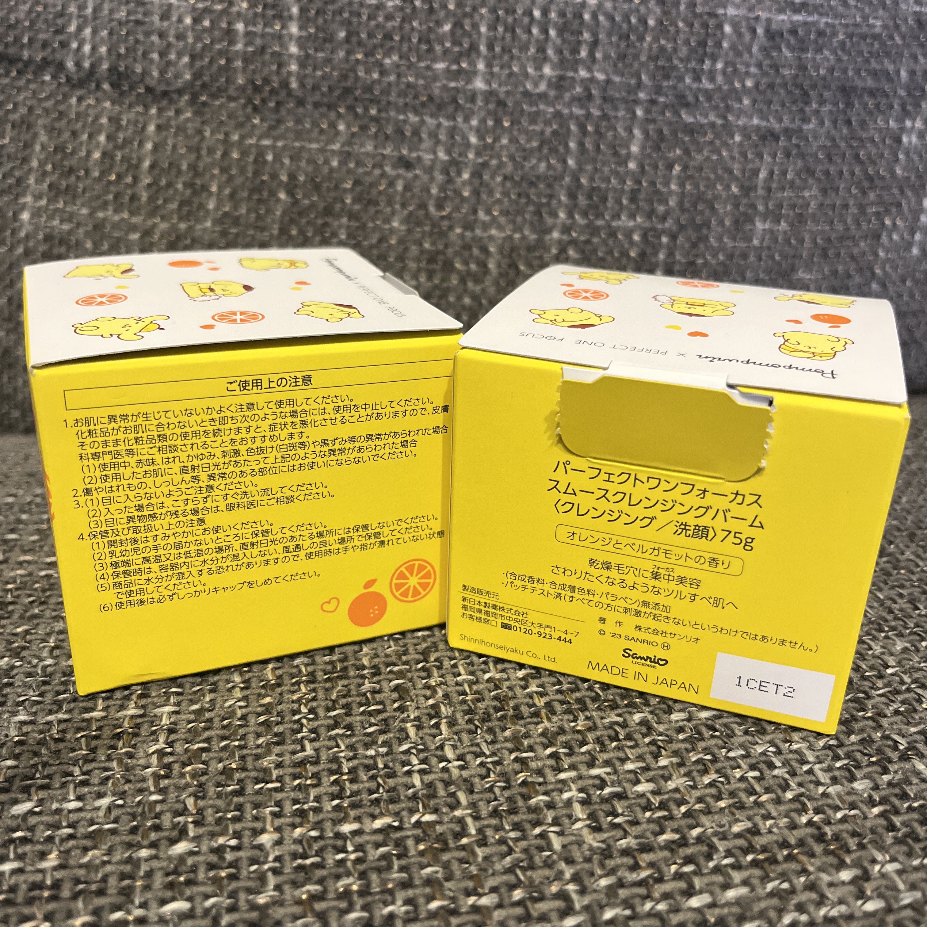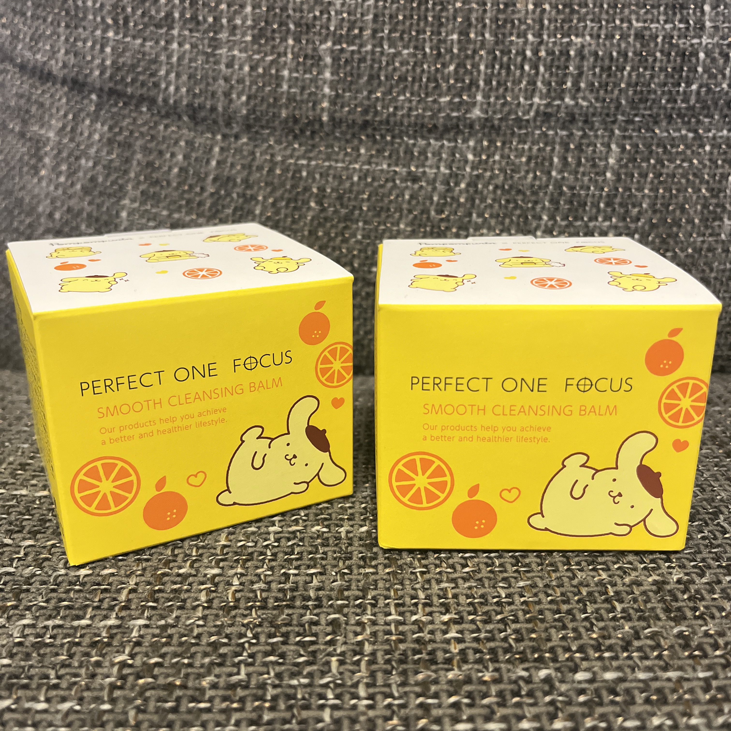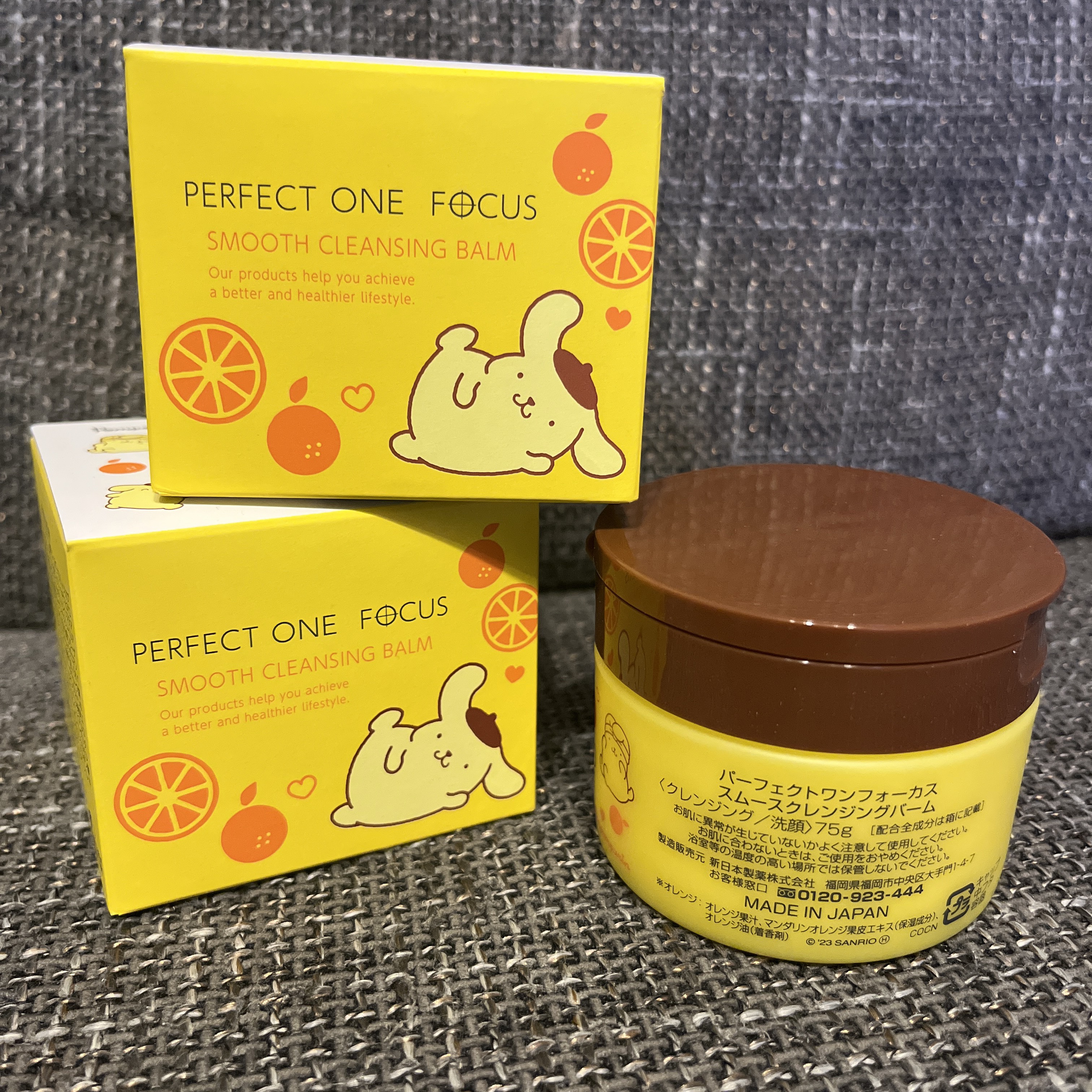PERFECTONEFOCUSスムースクレンジングバームポムポムプリン限定デザインこれは、迷わず買ってしまいました!!!ポムポムプリンデザイン、可愛すぎです!!!(シナモロールもありました!!!)オレンジとベルガモットの香りで癒されます。使用...