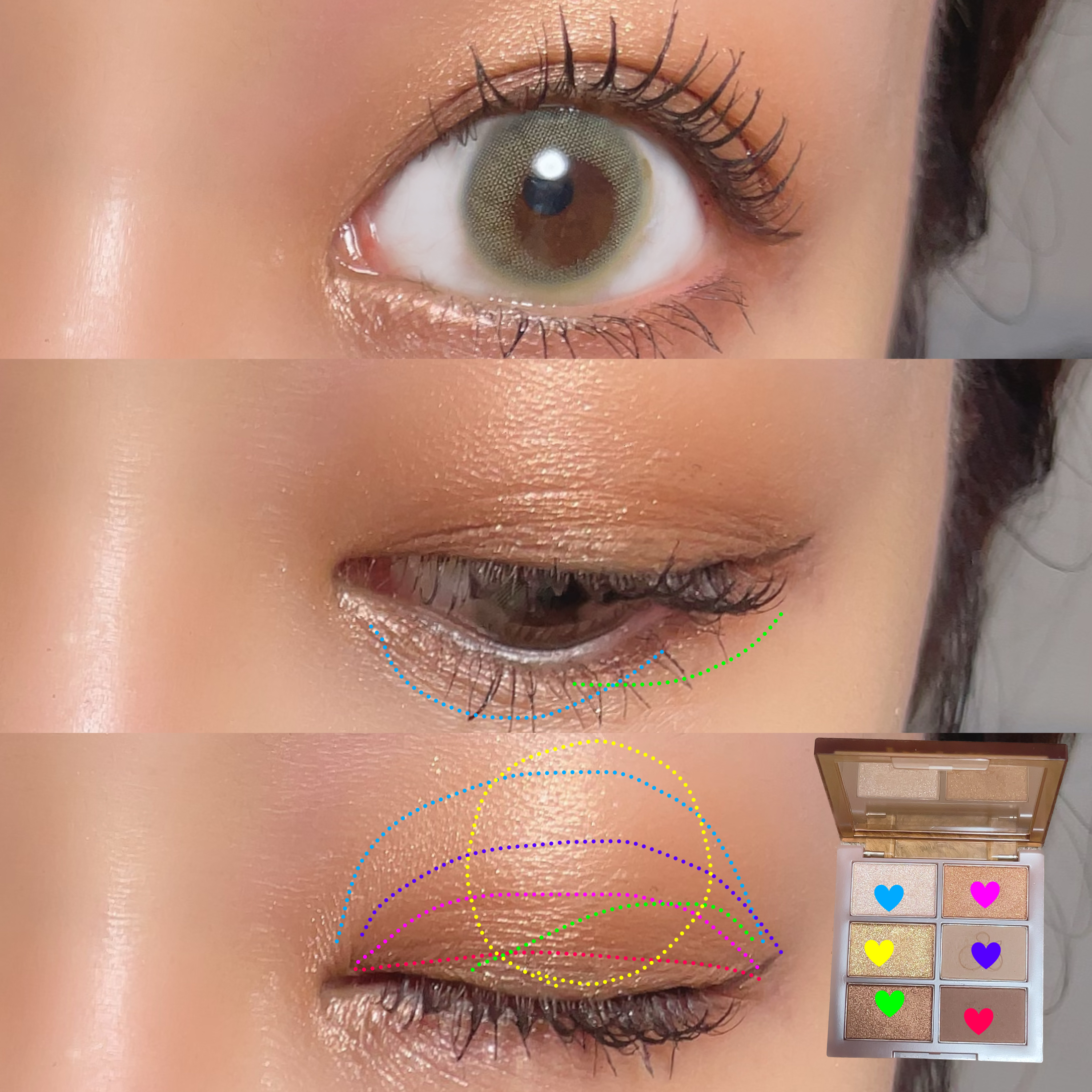 美容オイル配合で目元を乾燥から守りながらキラめく指塗り艶アイシャドウパレット♡ スフレのようなふんわりソフトなテクスチャーで、ラメのキラキラと艶、パレットの配色が絶妙なの✨ 指塗りでキラキラと艶が綺麗にのって、ベースカラーはハイライトにも使えてすごく便利✨