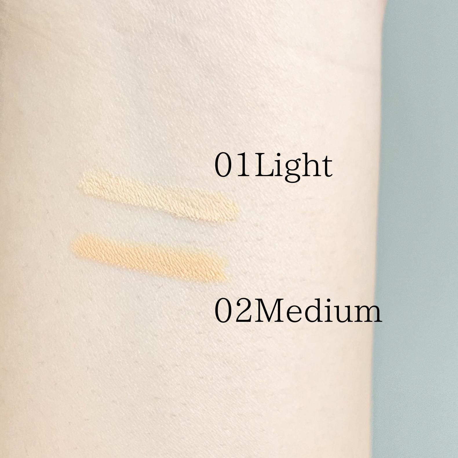 - <01 ライト> 酸化チタン、ジメチコン、トリメチルシロキシケイ酸、合成ワックス、マイカ、ポリエチレン、ポリプロピルシルセスキオキサン、フェニルプロピルジメチルシロキシケイ酸、(VP/ヘキサデセン) コポリマー、ポリヒドロキシステアリン酸、イソドデカン、ミツロウ、酸化鉄、トコフェロール、レシチン、ジステアルジモニウムヘクトライト、カプリリルグリコール、フェノキシエタノール、炭酸プロピレン、ヘキシレングリコール <02 ミディアム> 酸化チタン、ジメチコン、トリメチルシロキシケイ酸、合成ワックス、ポリエチレン、マイカ、ポリプロピルシルセスキオキサン、酸化鉄、フェニルプロピルジメチルシロキシケイ酸、(VP/へキサデセン)コポリマー、ポリヒドロキシステアリン酸、イソドデカン、ミツロウ、トコフェロール、レシチン、ジステアルジモニウムヘクトライト、カプリリルグリコール、フェノキシエタノール、炭酸プロピレン、へキシレングリコール