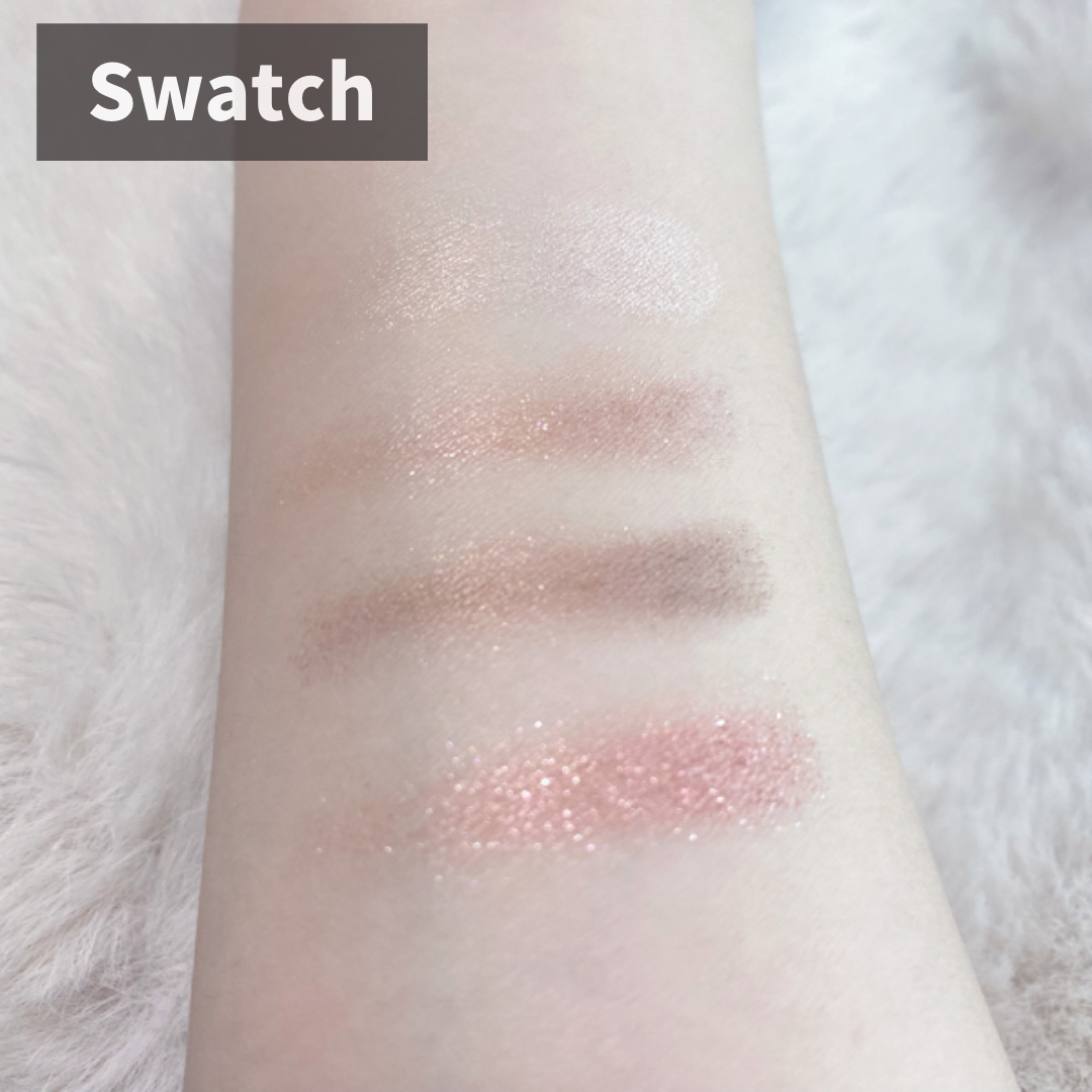 めちゃくちゃ安いのにしっとりふわふわ粉質で粉飛び全然しない!! 色持ちもアイシャドウベースなくてもかなり良い🥹 06トパーズピンクの色がブルベ大喜びカラーすぎてあまりに可愛い!!!!!