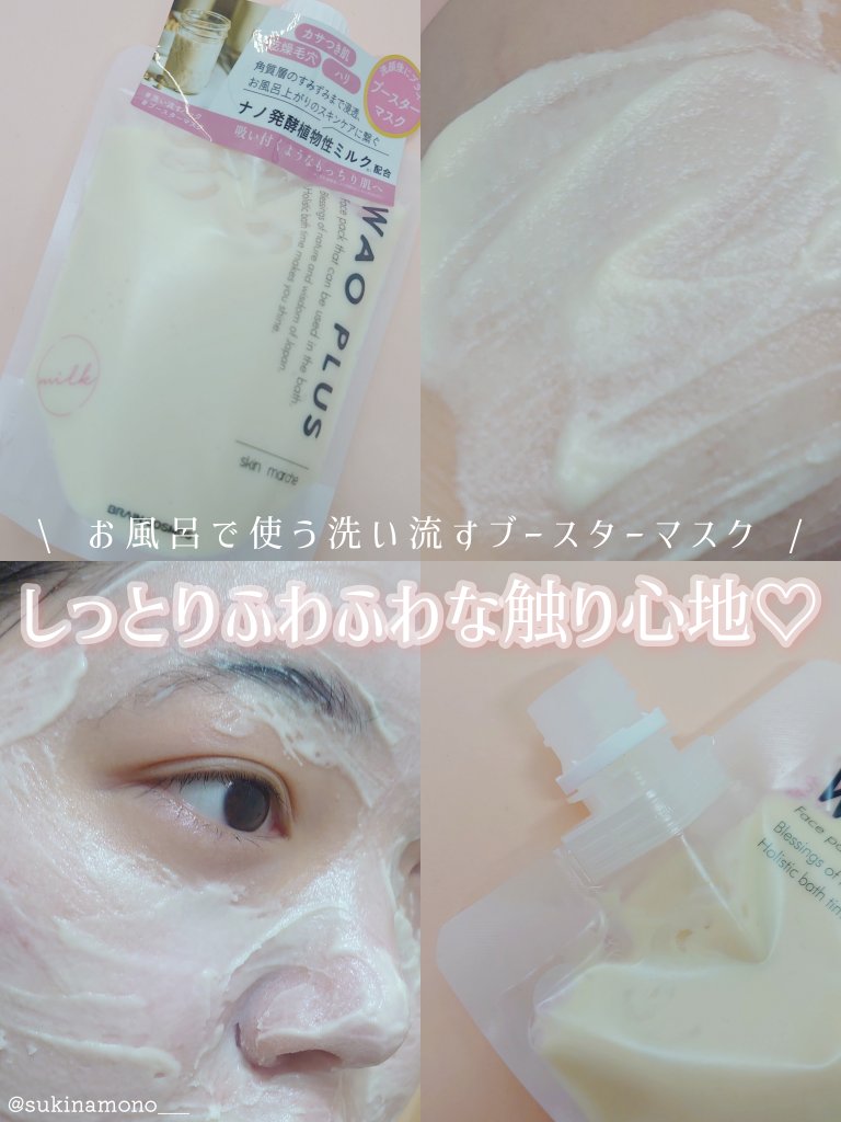 - 吸い付くようなもっちり肌へ!洗顔後にプラスして使用する洗い流すタイプのマスクです。お風呂上がりのスキンケア効果をサポートするナノ発酵植物性ミルク*1が角質層のすみずみまで浸透。カサつき肌や乾燥毛穴、肌のハリにアプローチし乾燥により毛穴が気になる肌もうるおうもっちり肌へ整えます。 *1.超高圧処理を施した豆乳発酵液(保湿成分)、コメ発酵液(保湿成分)