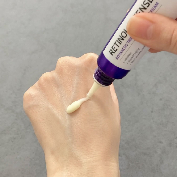 サムバイミーは、トラブル肌、敏感肌に注意を注いでいるスキンケアブランド☝️ そんなサムバイミーが作った、レチノール入りのアイクリームって👀⤴️⤴️ レチノール0.1%+グルタチオン配合で、レチノール入りなのに初心者でも使いやすい😆 クリーム色の、滑らかなクリーム状テクスチャー😌 チューブの先が細く、少量も出しやすいし目元ケアしやすい⤴️