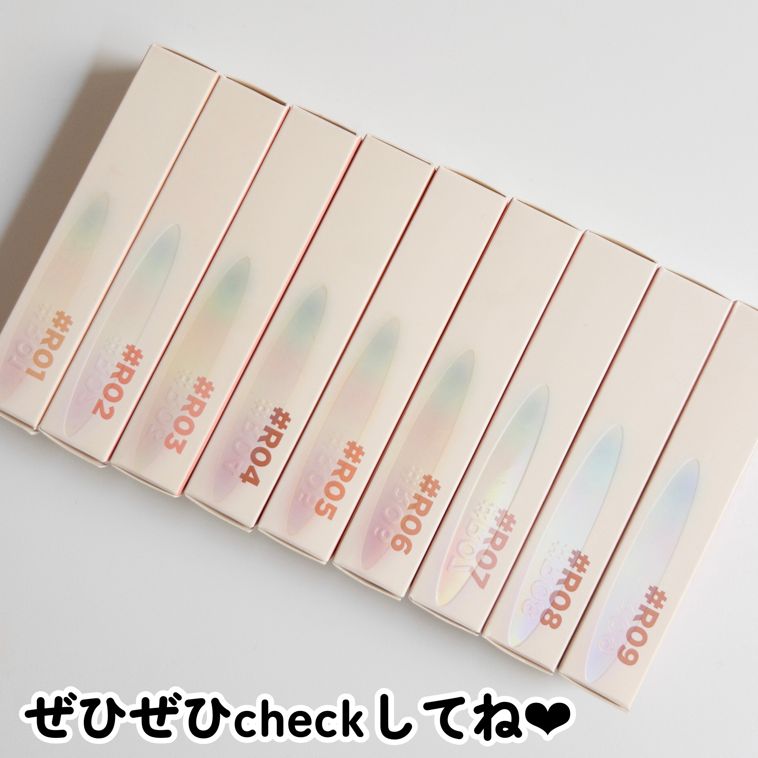 - R01 一目惚れアマレットジンジャー 水、ジフェニルジメチコン、ビスジグリセリルポリアシルアジペート-2、リンゴ酸ジイソステアリル、オクチルドデカノール、水添ポリイソブテン、ダイマージリノール酸ダイマージリノレイルビス(ベヘニル/イソステアリル/フィトステリル)、グリセリン、ジメチコン、セチルPEG/PPG-10/1ジメチコン、DPG、イソステアリン酸ソルビタン、ポリソルベート60、ペンチレングリコール、(ジメチコン/ビニルジメチコン)クロスポリマー、(アクリル酸ヒドロキシエチル/アクリロイルジメチルタウリンNa)コポリマー、セテアレス-20、スクワラン、フェノキシエタノール、酸化チタン、ミリスチン酸ポリグリセリル-10、黄5、BG、香料、エチルヘキシルグリセリン、赤227、青1、アルギニン、カルボマー、オニユリエキス、モモ果実エキス R02 甘えんぼピーチフィズ 水、ジフェニルジメチコン、ビスジグリセリルポリアシルアジペート-2、リンゴ酸ジイソステアリル、オクチルドデカノール、水添ポリイソブテン、ダイマージリノール酸ダイマージリノレイルビス(ベヘニル/イソステアリル/フィトステリル)、グリセリン、ジメチコン、セチルPEG/PPG-10/1ジメチコン、DPG、イソステアリン酸ソルビタン、ポリソルベート60、ペンチレングリコール、(ジメチコン/ビニルジメチコン)クロスポリマー、(アクリル酸ヒドロキシエチル/アクリロイルジメチルタウリンNa)コポリマー、セテアレス-20、スクワラン、フェノキシエタノール、ミリスチン酸ポリグリセリル-10、BG、酸化チタン、香料、黄5、エチルヘキシルグリセリン、赤227、赤104(1)、青1、アルギニン、カルボマー、オニユリエキス、モモ果実エキス R03 わがままロゼワイン 水、ジフェニルジメチコン、ビスジグリセリルポリアシルアジペート-2、リンゴ酸ジイソステアリル、オクチルドデカノール、水添ポリイソブテン、ダイマージリノール酸ダイマージリノレイルビス(ベヘニル/イソステアリル/フィトステリル)、グリセリン、ジメチコン、セチルPEG/PPG-10/1ジメチコン、DPG、イソステアリン酸ソルビタン、ポリソルベート60、ペンチレングリコール、(アクリル酸ヒドロキシエチル/アクリロイルジメチルタウリンNa)コポリマー、(ジメチコン/ビニルジメチコン)クロスポリマー、セテアレス-20、スクワラン、フェノキシエタノール、ミリスチン酸ポリグリセリル-10、BG、香料、黄5、赤227、エチルヘキシルグリセリン、青1、アルギニン、カルボマー、オニユリエキス、モモ果実エキス R04 いたずらカシスコーク 水、ジフェニルジメチコン、ビスジグリセリルポリアシルアジペート-2、リンゴ酸ジイソステアリル、オクチルドデカノール、水添ポリイソブテン、ダイマージリノール酸ダイマージリノレイルビス(ベヘニル/イソステアリル/フィトステリル)、グリセリン、ジメチコン、セチルPEG/PPG-10/1ジメチコン、DPG、イソステアリン酸ソルビタン、ポリソルベート60、ペンチレングリコール、(ジメチコン/ビニルジメチコン)クロスポリマー、(アクリル酸ヒドロキシエチル/アクリロイルジメチルタウリンNa)コポリマー、セテアレス-20、スクワラン、黄5、フェノキシエタノール、ミリスチン酸ポリグリセリル-10、酸化チタン、赤227、BG、香料、エチルヘキシルグリセリン、青1、アルギニン、カルボマー、オニユリエキス、モモ果実エキス R05 気ままチェリーブランデー 水、ジフェニルジメチコン、ビスジグリセリルポリアシルアジペート-2、リンゴ酸ジイソステアリル、オクチルドデカノール、水添ポリイソブテン、ダイマージリノール酸ダイマージリノレイルビス(ベヘニル/イソステアリル/フィトステリル)、グリセリン、ジメチコン、セチルPEG/PPG-10/1ジメチコン、DPG、イソステアリン酸ソルビタン、ポリソルベート60、ペンチレングリコール、(ジメチコン/ビニルジメチコン)クロスポリマー、(アクリル酸ヒドロキシエチル/アクリロイルジメチルタウリンNa)コポリマー、セテアレス-20、スクワラン、酸化チタン、フェノキシエタノール、ミリスチン酸ポリグリセリル-10、黄5、BG、香料、赤227、エチルヘキシルグリセリン、黄4、青1、アルギニン、カルボマー、オニユリエキス、モモ果実エキス R06 誘惑チョコリキュール 水、ジフェニルジメチコン、ビスジグリセリルポリアシルアジペート-2、リンゴ酸ジイソステアリル、オクチルドデカノール、水添ポリイソブテン、ダイマージリノール酸ダイマージリノレイルビス(ベヘニル/イソステアリル/フィトステリル)、グリセリン、ジメチコン、セチルPEG/PPG-10/1ジメチコン、DPG、イソステアリン酸ソルビタン、ポリソルベート60、ペンチレングリコール、(ジメチコン/ビニルジメチコン)クロスポリマー、(アクリル酸ヒドロキシエチル/アクリロイルジメチルタウリンNa)コポリマー、セテアレス-20、スク R07 ほろ甘サングリア 水、ジフェニルジメチコン、ビスジグリセリルポリアシルアジペート-2、リンゴ酸ジイソステアリル、オクチルドデカノール、水添