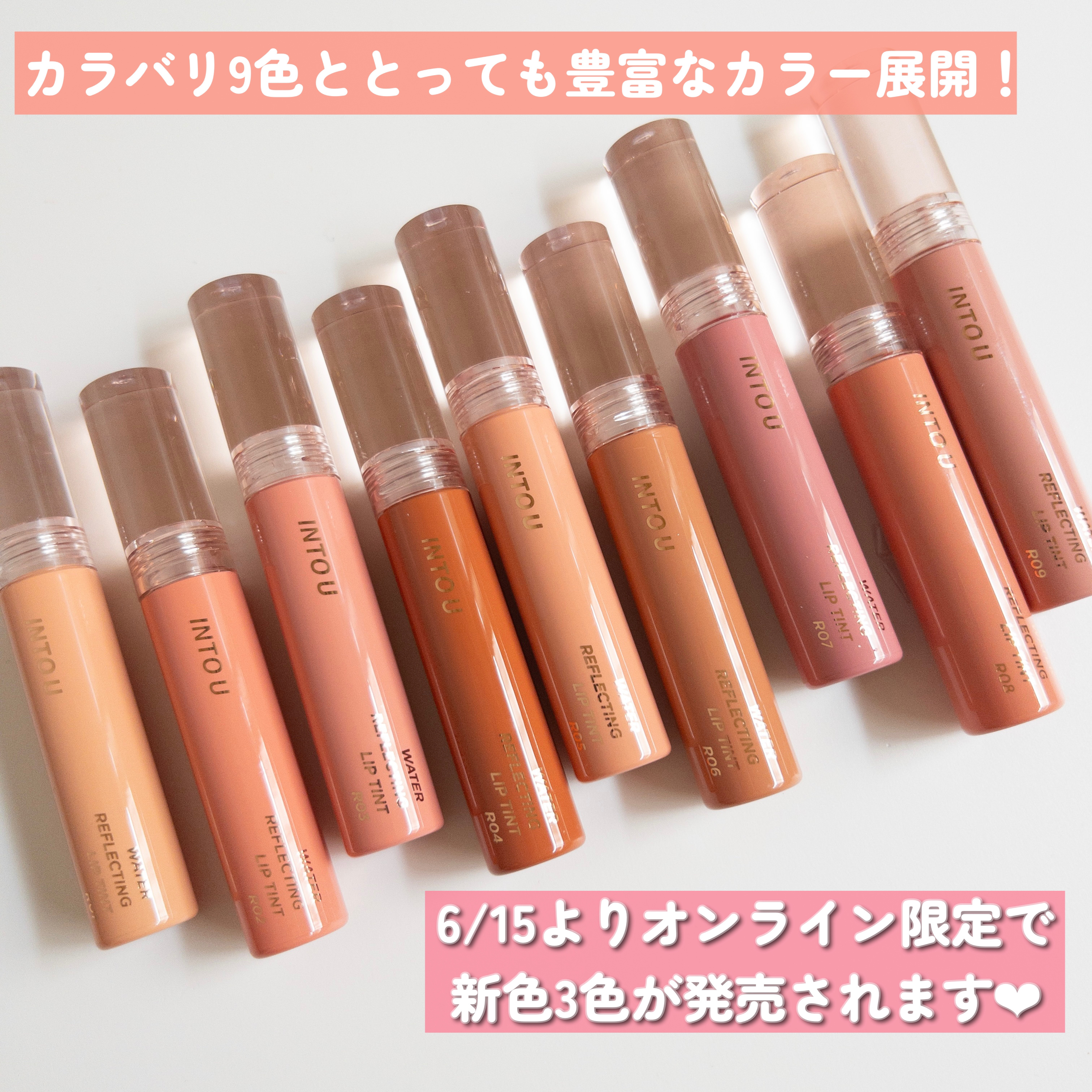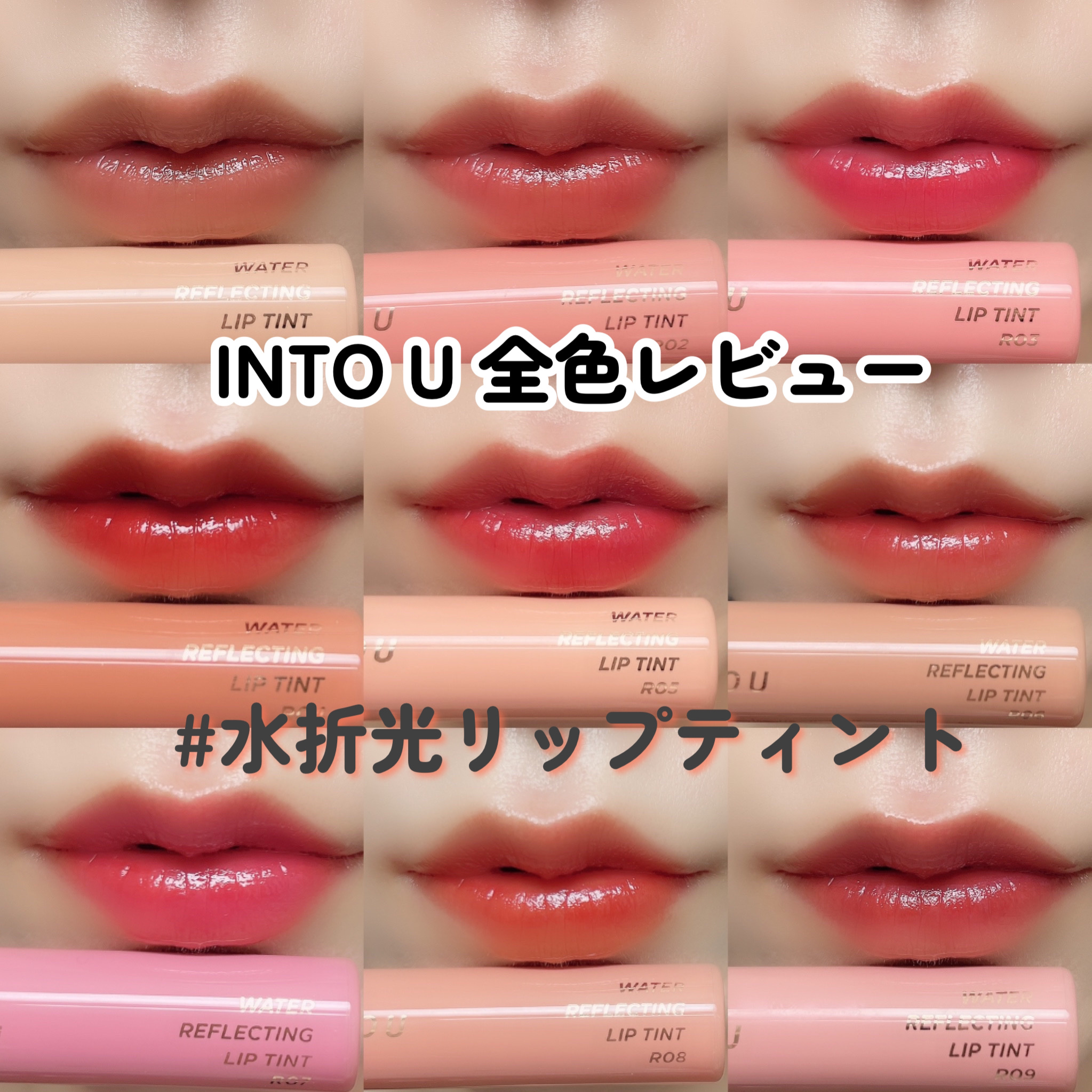 INTOUウォーターリフレクティングリップティント全6色紹介です!【商品について】水面が光を反射するような美しい輝き(水折光)をコンセプトに作られているツヤ系リップティント。塗ってから時間が経つとツヤが増す&透け感もあるので透明感がある...