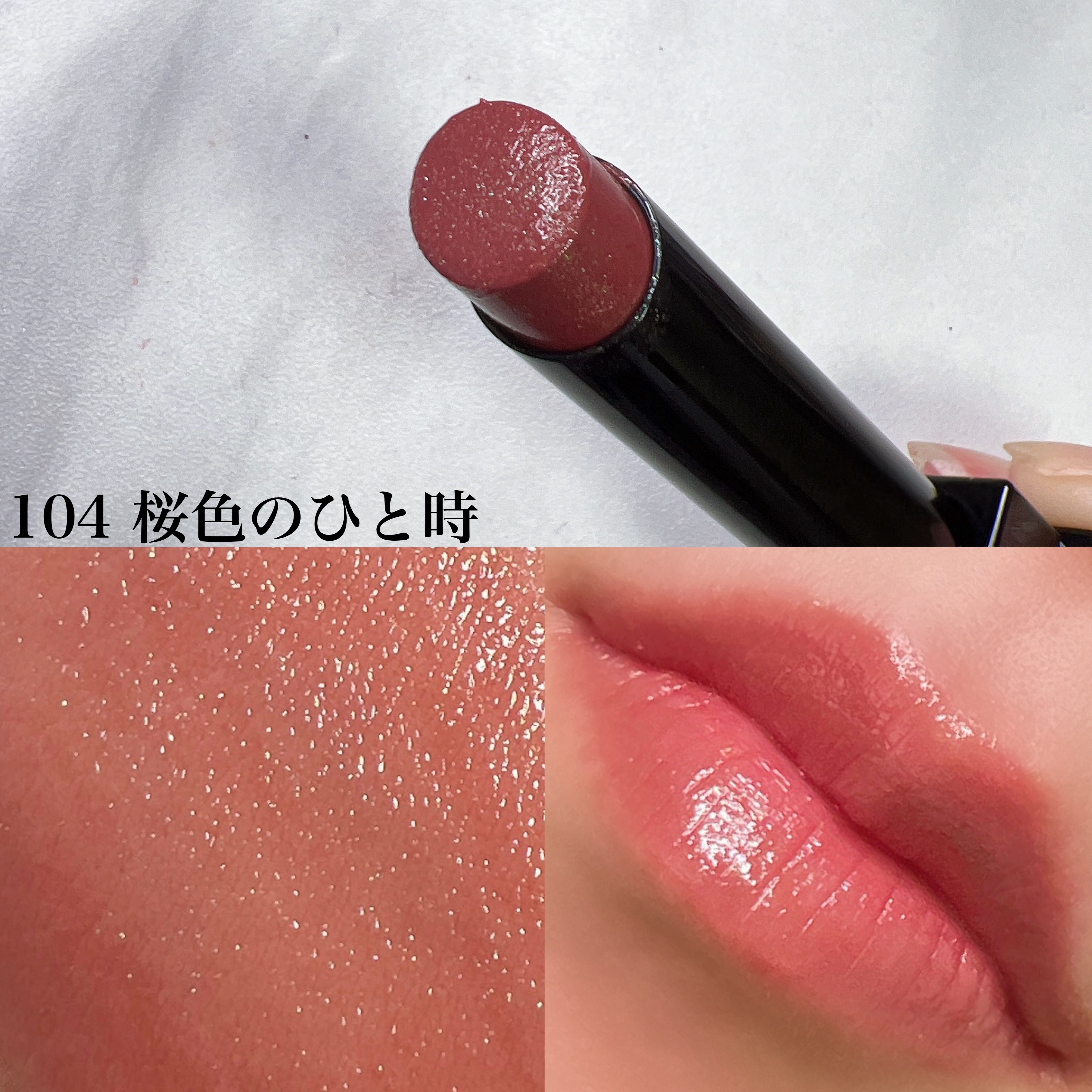なめらかなテクスチャーひと塗りでふっくらぷるぷる唇になります✨ 付け心地やプルプル感、仕上がりはLakaのフルーティーグラムティントに似てるかな?と感じました。 保湿力が高め。長時間しっとり感が続いて時間が経っても乾燥してこない所が良い! ティントだと乾燥したり皮剥けでカサカサ唇になってしまうわたしですが、こちらは皮剥けせずに使えています。 色もちも抜群だしツヤも長持ちするところも良いです🙆♀️✨ チェリーブロッサムの甘い香り🍒口に入ると甘いです😳♡ ぷるぷる系ティントが好きな方におすすめのリップです❣️