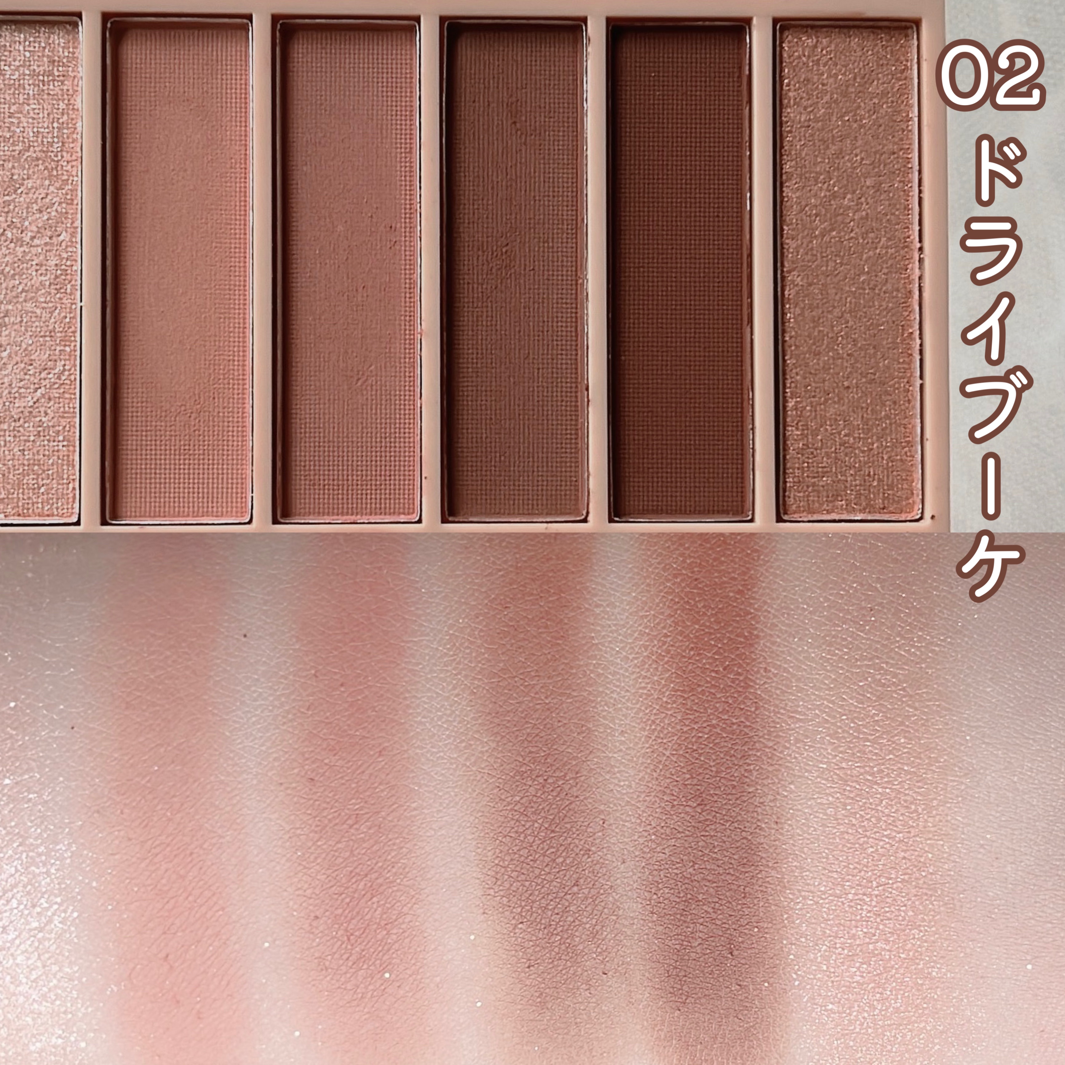 - <02 ドライブーケ> マイカ、タルク、ホウケイ酸(Ca/Al)、マンガンバイオレット、ポリブチレンテレフタレート、パルミチン酸エチルヘキシル、シリカ、ステアリン酸Mg、合成フルオロフロゴパイト、トリメリト酸トリトリデシル、ジメチコン、ポリイソブテン、酸化鉄、酸化チタン、コーンスターチ、ケイ酸(Na/K/Al)、フェノキシエタノール、ヒマワリ種子油、アクリレーツコポリマー、マイクロクリスタリンワックス、トリ(カプリル酸/カプリン酸)グリセリル、PEG-10ジメチコン、(エチレン/VA)コポリマー、ポリブテン、(スチレン/ブタジエン)コポリマー、酸化スズ、メチルパラベン、エチルパラベン、赤201、カプリリルグリコール、ミネラルオイル、Al、メトキシケイヒ酸エチルヘキシル、赤202、黄4 <03 ミュートサンセット> マイカ、タルク、ホウケイ酸(Ca/Al)、ポリブチレンテレフタレート、シリカ、パルミチン酸エチルヘキシル、マンガンバイオレット、トリメリト酸トリトリデシル、ステアリン酸Mg、合成フルオロフロゴパイト、酸化チタン、ポリイソブテン、酸化鉄、ジメチコン、ケイ酸(Na/K/Al)、フェノキシエタノール、コーンスターチ、ヒマワリ種子油、マイクロクリスタリンワックス、トリ(カプリル酸/カプリン酸)グリセリル、アクリレーツコポリマー、PEG-10ジメチコン、ポリブテン、(エチレン/VA)コポリマー、(スチレン/ブタジエン)コポリマー、酸化スズ、メチルパラベン、エチルパラベン、ミネラルオイル、カプリリルグリコール、Al、メトキシケイヒ酸エチルヘキシル、赤201、赤202 <04 ライクピスタチオ> マイカ、タルク、シリカ、合成フルオロフロゴパイト、ホウケイ酸(Ca/Al)、酸化鉄、ステアリン酸Mg、トリメリト酸トリトリデシル、パルミチン酸エチルヘキシル、マンガンバイオレット、ジメチコン、ケイ酸(Na/K/Al)、酸化チタン、PEG-10ジメチコン、コーンスターチ、フェノキシエタノール、ポリブテン、メチルパラベン、エチルパラベン、青1、ミネラルオイル、酸化スズ、赤201