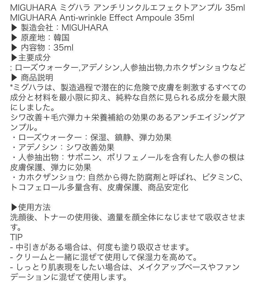 MIGUHARA アンチリンクルエフェクトアンプルオリジン |