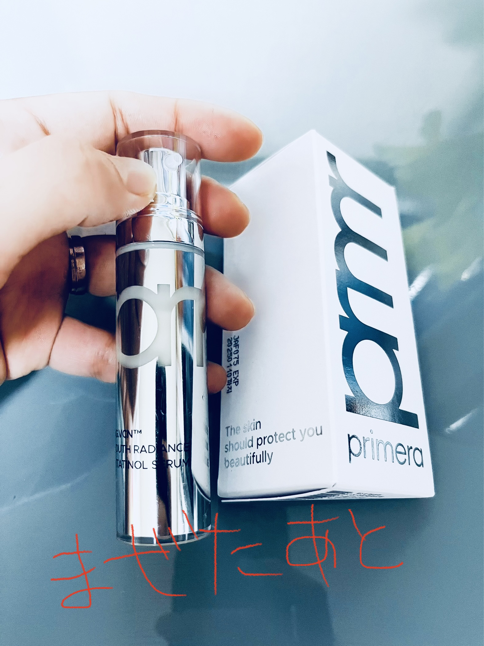 ビタミンC※とレチノール※1って、基本的に一緒に使わない方がいいと言われているらしいのですが、こちらはなんとプリメラの最適比率で同時に使えるようにしてあるんだそう✨ 出してみるとすごくとろーりもっちりとしたテクスチャーのセラム。お肌に密着するようなつけ心地で、しっとりした使い心地がとても良かったです。 朝晩使えるけど、朝に使う時はスキンケアの後に日焼け止めは必須とのこと。