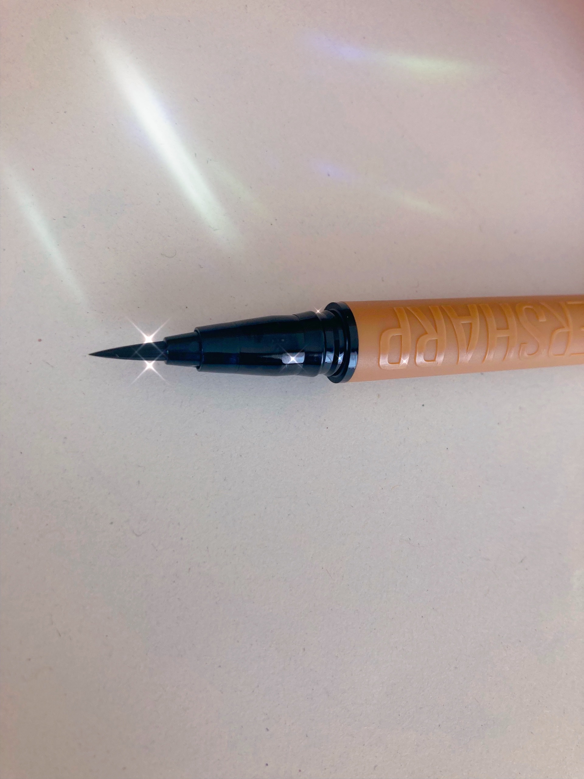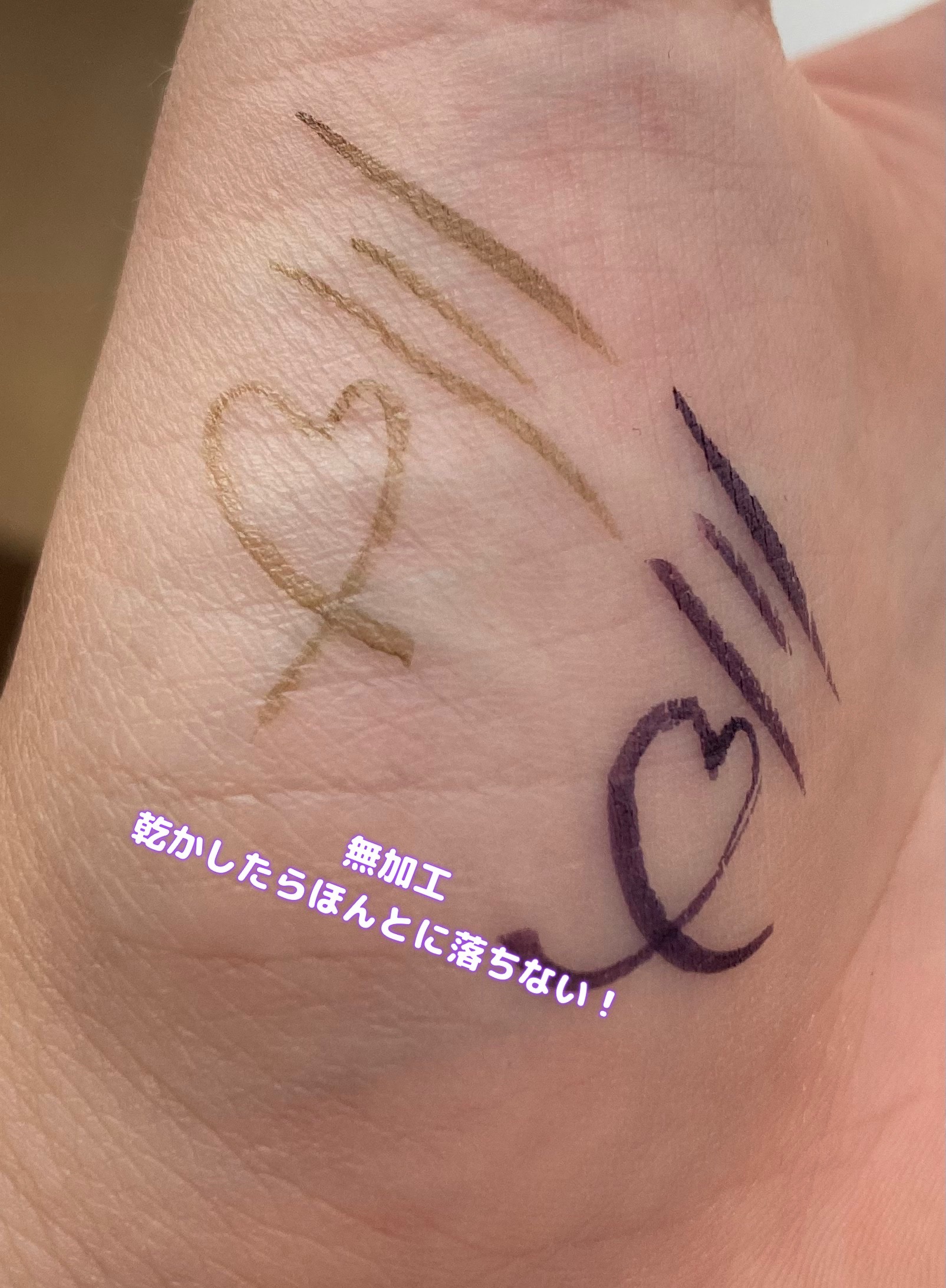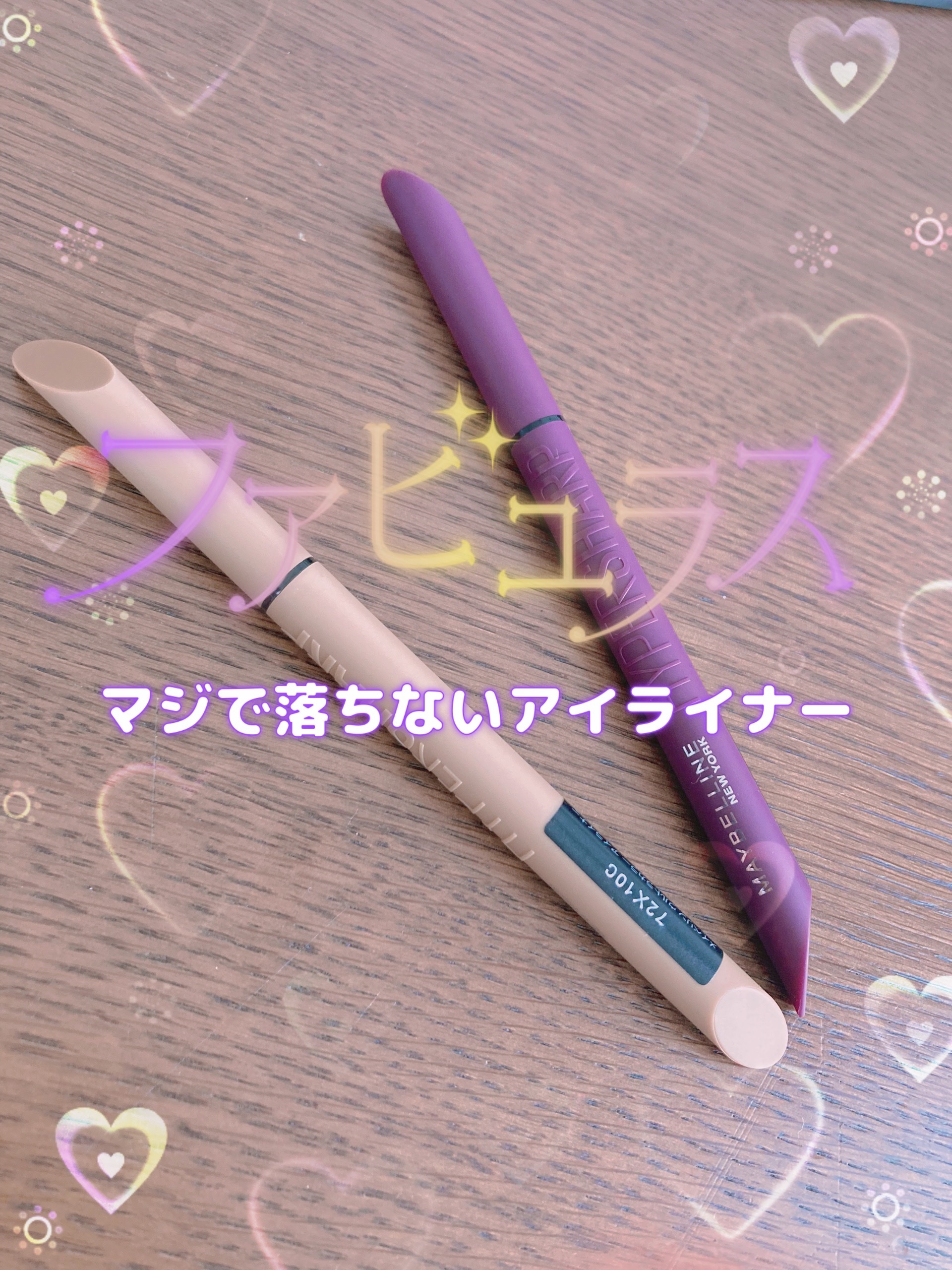 まずこのアイライナーのいいところは乾いたら落ちないことです。擦れにめちゃくちゃ強いと感じました。 次に色味がパケと全く同じところ! ポーチにごちゃごちゃ入ってても探しやすいし色味が忠実すぎるので買う時は参考にしてください! パケと全く同じパープルです 深い紫って感じで、いつも黒のアイライナー使ってる自分が使うと抜け感が出てめっちゃオキニです、! ナチュラルなベージュです、 色味はケイトの二重ライナーに近いです かなりナチュラルなのでめっちゃ肌に馴染んで自然に盛れます。 カットクリース描くなら絶対コレです! 筆はハリがあるので緩急つけやすいと感じました。 是非売り場で見かけたらテスターしてみて下さい!
