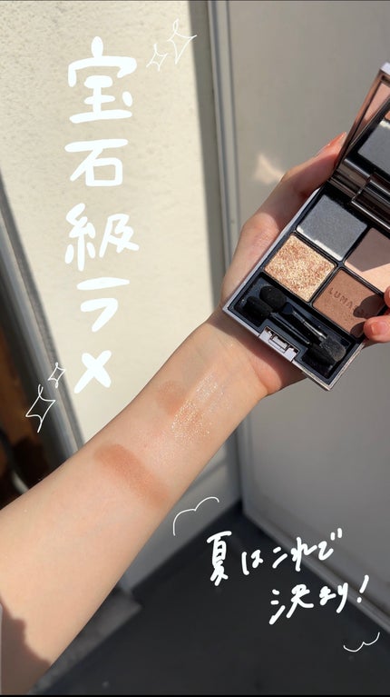 こちらのカラーはアイカラーレーションの中でも特に人気のあるカラーです️🩵💛 ブラウンシャドウではありますが、質感や色味が唯一無二で変えがきかない……! 華やかでクリアな印象のラメ(チラチラ輝く)はシルバー~水色系の左上のラメは大粒で軽く塗っても華やかになる✨✨ 右下は黄みの強すぎない明るめのブラウン🤎 締め色を求める方には物足りないと思いますが、締めはアイラインに任せるタイプの私はベース~中間色として扱いやすいです。