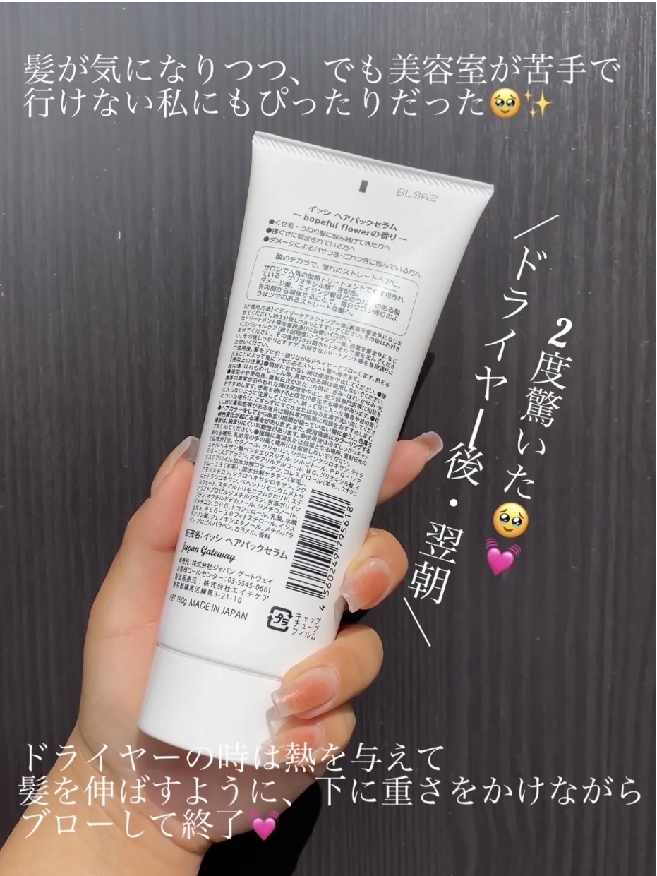 | トリートメントランキング第68位 | しっかり揉み込んで数分おいて洗い流すと 流しながら感じる髪のとぅるとぅる感🥹ドライヤーで乾かしたらサラサラ👏 | 詳細を見る | |
