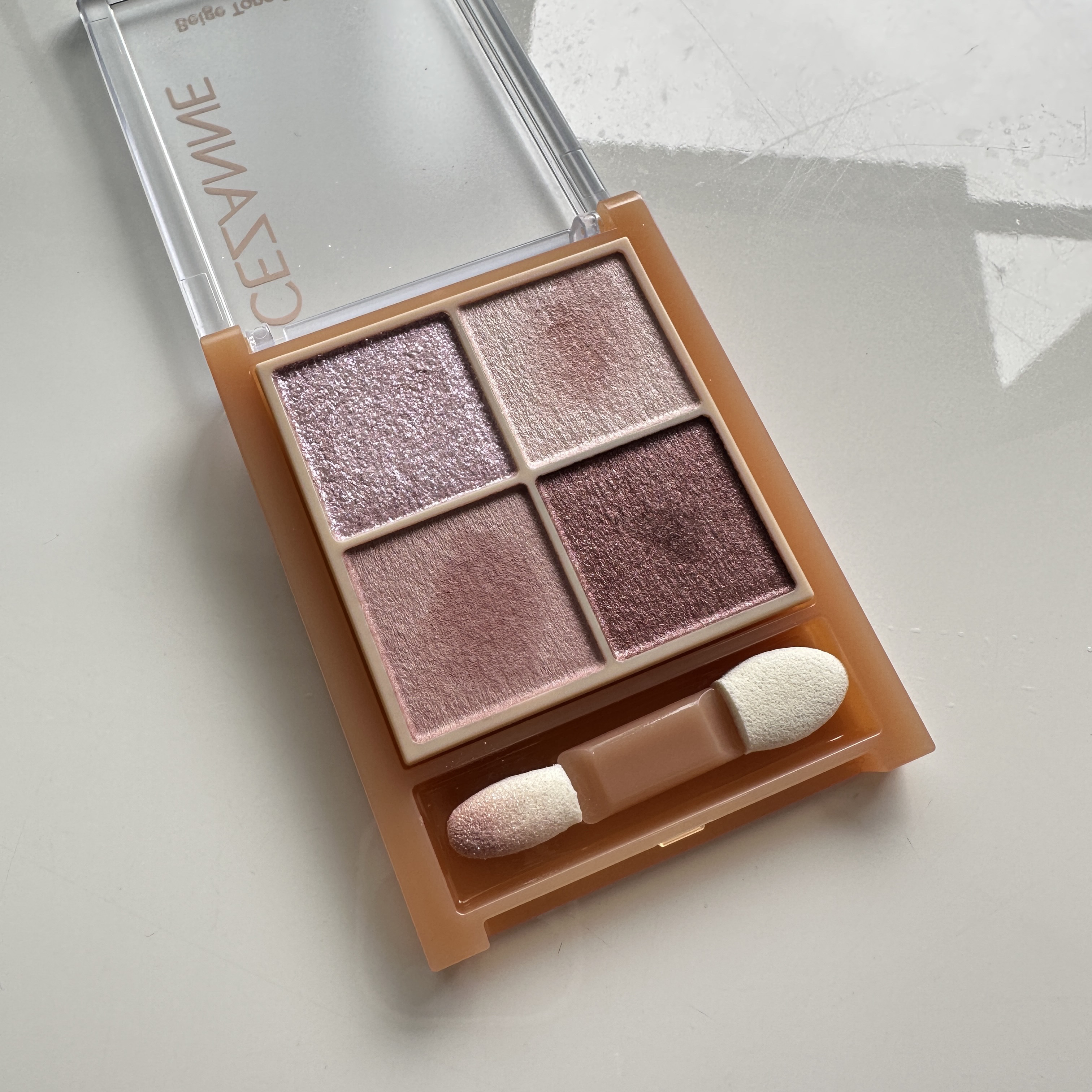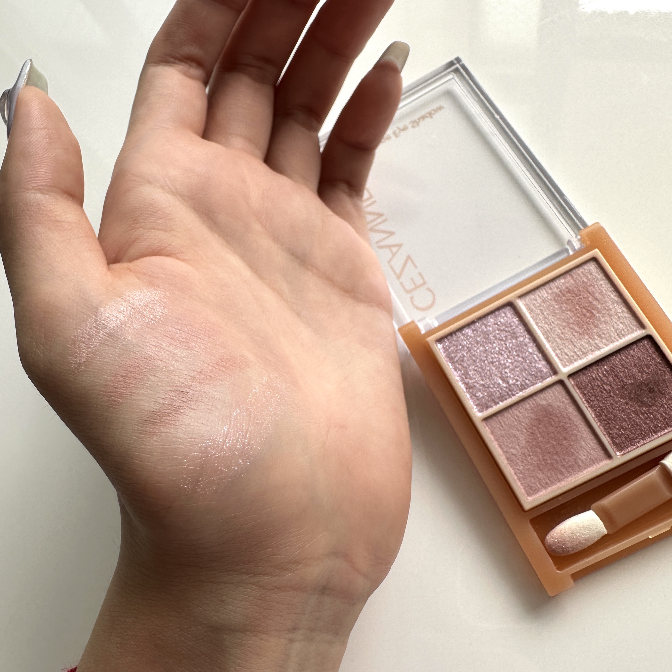 - ラメ・パール・マット3質感の4色アイシャドウ。 肌馴染みの良いベージュを基調としたカラー。ラメ・パール・マットの3質感を重ねて、自然にまぶたを強調し奥行のある大きな目元へ。 しっとり溶け込むような柔らかなパウダーなので、スルスル伸びてまぶたにピタッと密着。保湿成分(スクワラン・ホホバ種子油)配合。