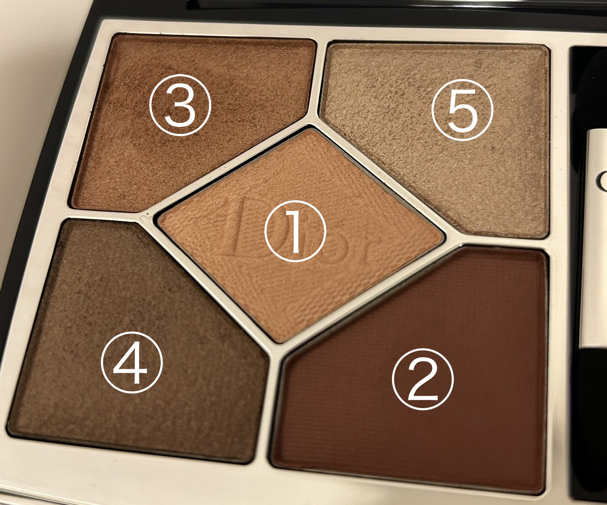 Diorサンククルールクチュール349プレタポルテ今日はこれ✨🐤真ん中のベージュ→アイホール全体に🐤右下の赤みブラウン→二重幅と、下瞼の目尻側に🐤左下のコッパー→下瞼にいつも思うけど、特に赤みブラウンがやっぱり可愛い😍...