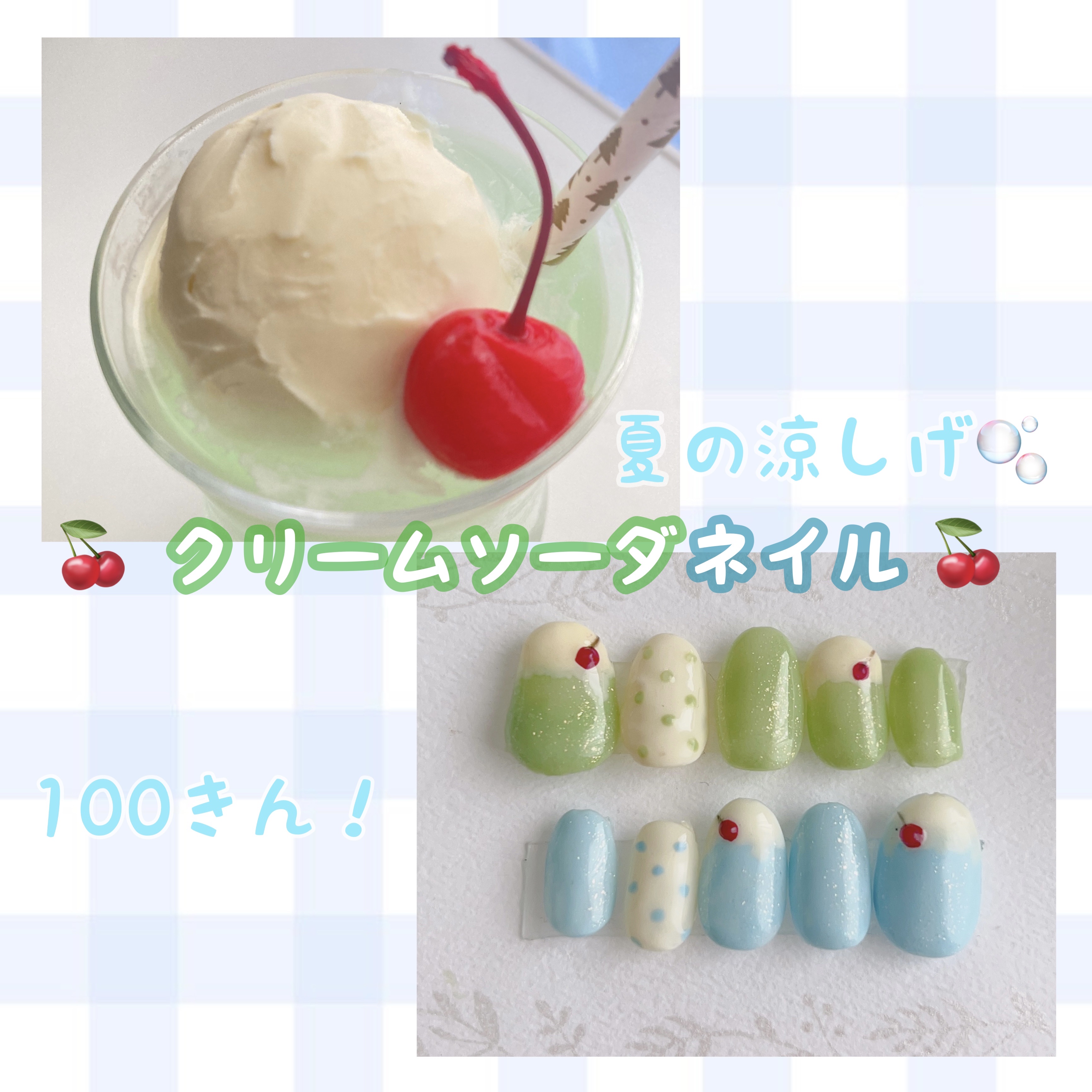しゅわしゅわクリームソーダネイル🍹今日は先日紹介したDAISOのネイルシールを使ってクリームソーダネイルキャンドゥで見つけたきらきらのジェルネイルがクリームソーダにぴったりだったので使ってみました💎今日使ったのはジェルですがまあマニキュアのデ...