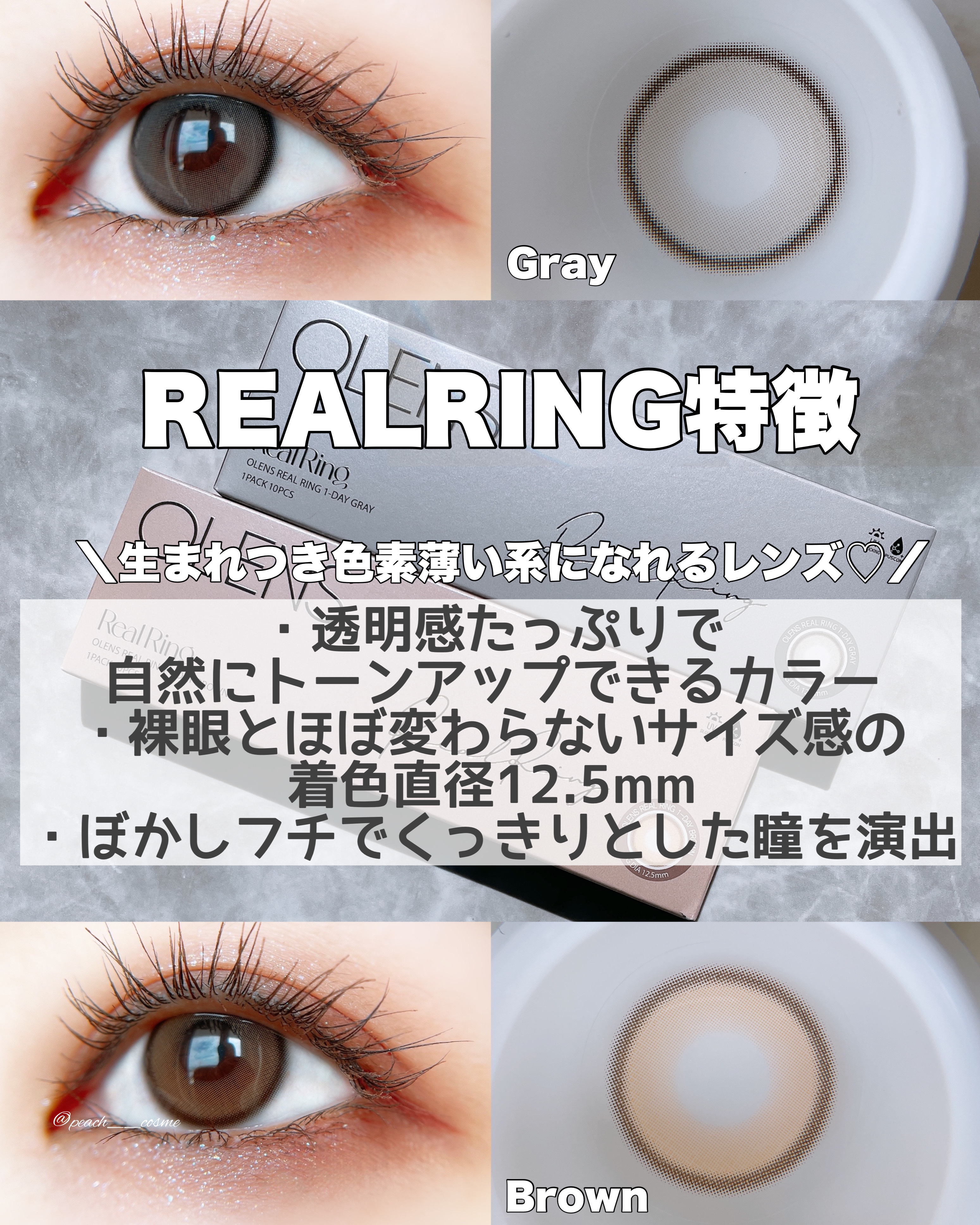 大人気リアルリングvs新作リアリッシュOLENSデカ目カラコン比較レビューtobibiです!今回はOLENSの新作カラコンRealishと大人気カラコンRealRingが似ているので比較しながらレビューしたいと思います🤍\大きく盛れる新作カラ...