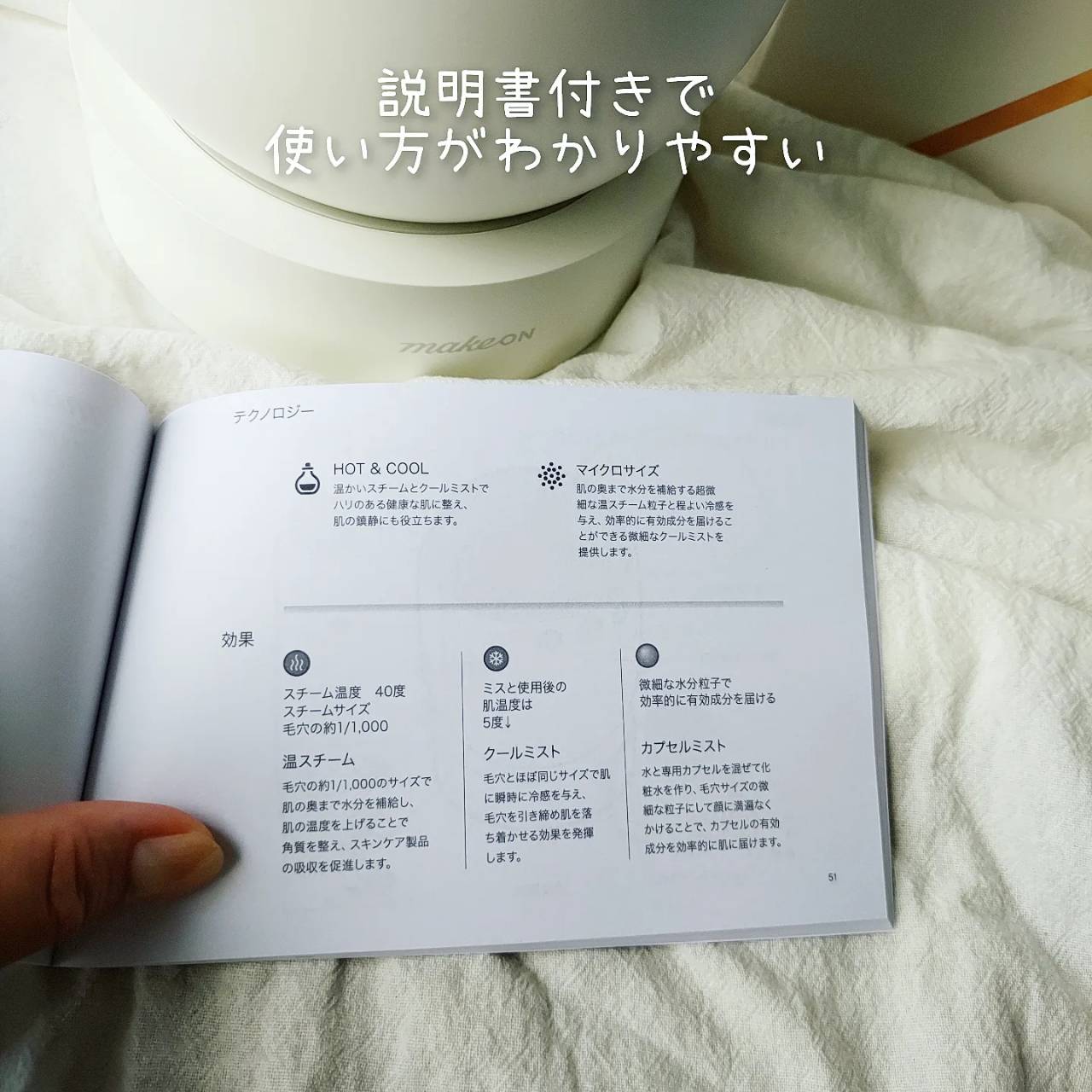 今回初めてスチーマーを使用しました🥰私は基本温スチーマーを使用することが多いです🎶40℃程の温かいスチーマーでリラックスもできるしディープクレンジングできるのが嬉しい✨ スチーマーを使用した後、スキンケアをするとやはり馴染みが良いのかぷるぷるします🎶 私は使用してませんが、別売りのヒアルロン酸カプセルを使用するとうるおいと栄養も同時に吸収できるみたいなので、それも試してみたいです💓