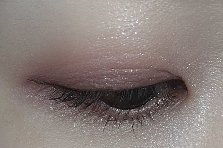ベースは少しブラウンが混ざったようなくすみピンクという感じの色味です💡もちろん単体でも使えますが、淡めの発色なので手持ちのアイシャドウと色々組み合わせても良さそうです🙆 青の偏光ラメがぎっしりと入っているのですが、そこまでラメが大きすぎず繊細なラメ感なのでギラギラしすぎないところが良いなと思いました☺️ ただ実際使用してみて結構ラメ落ちするかなーという印象だったので、アイシャドウベースは塗った方が良いと思います🤔💡 ラメ感が本当にとってもかわいいので、ラメ好きの方は是非チェックしてみてください✨