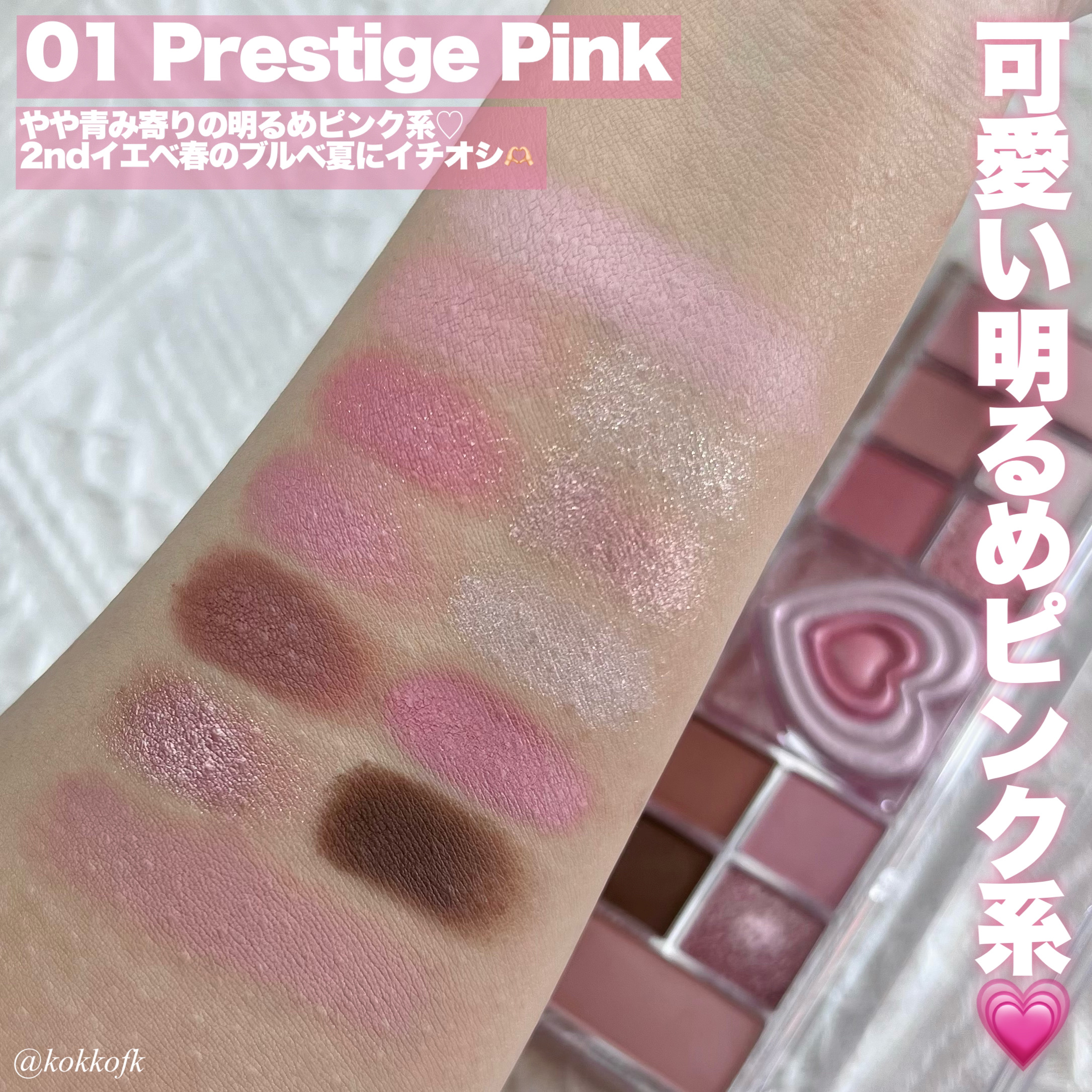 この、1つのパレットで…アイシャドウ、ハイライト、チークができちゃう! 優秀なマルチなパレットです♪ 可愛いが溢れる配色のパレットです🩷 ハートの左側は全体的にマットシャドウもハイライト明るめの可愛いピンクの色味で、 個人的にハイライトのカラーが大好きです! 偏光パールやラメ感でしっかり光ってくれるので鼻先にもほっぺにも使ってます💡