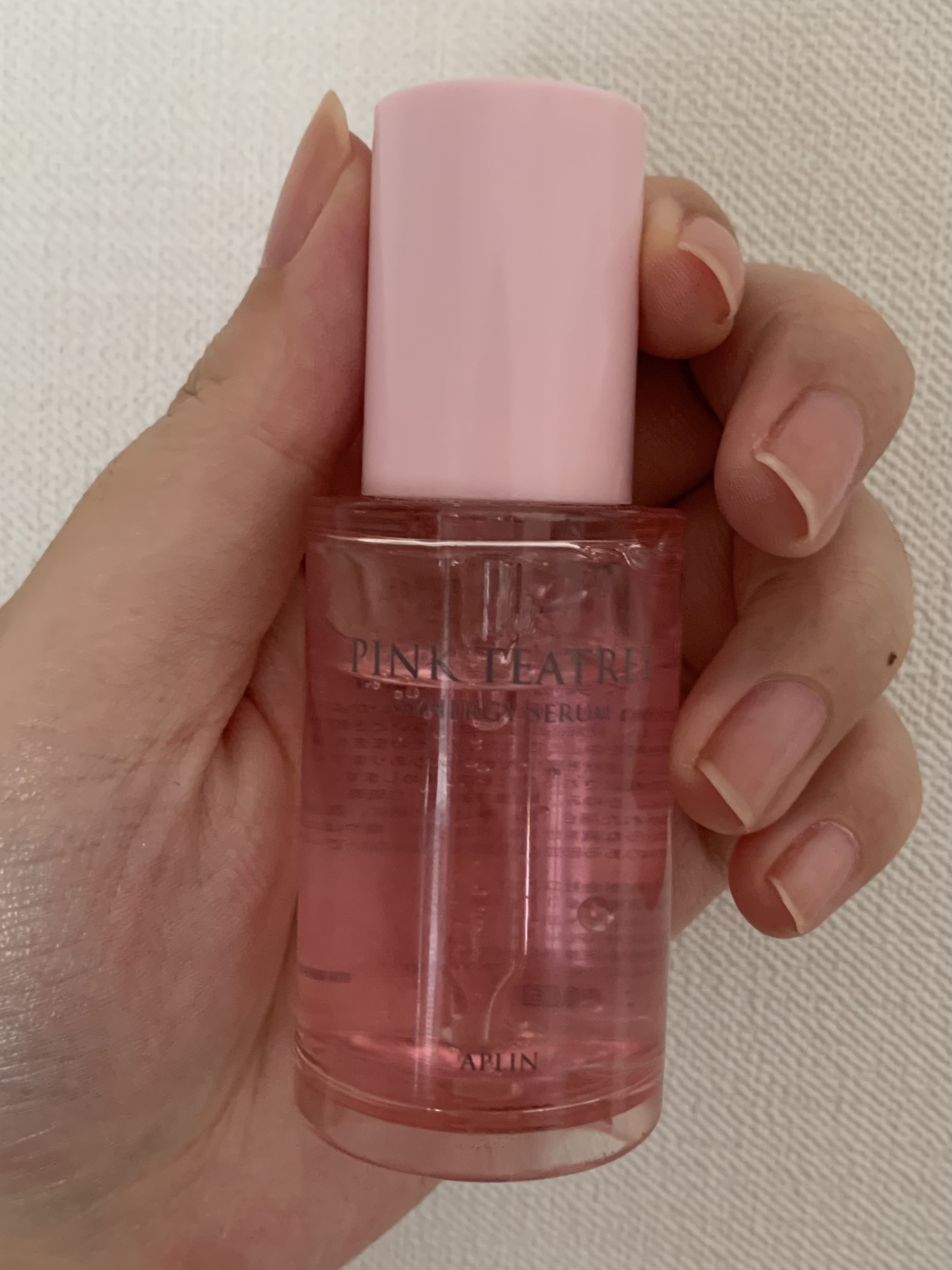 可愛いピンク色のAPLIN第人気のセラム♡ このピンク色は自然成分ビタミンB12によるもので、着色料不使用⚐ ˒˒ ●保湿成分のティーツリーやツボクサ(CICA)エキス配合 →肌荒れの鎮静効果 とろっとした濃厚なテクスチャーですが、スーッと伸びてしっとりもっちりとしたお肌に♡