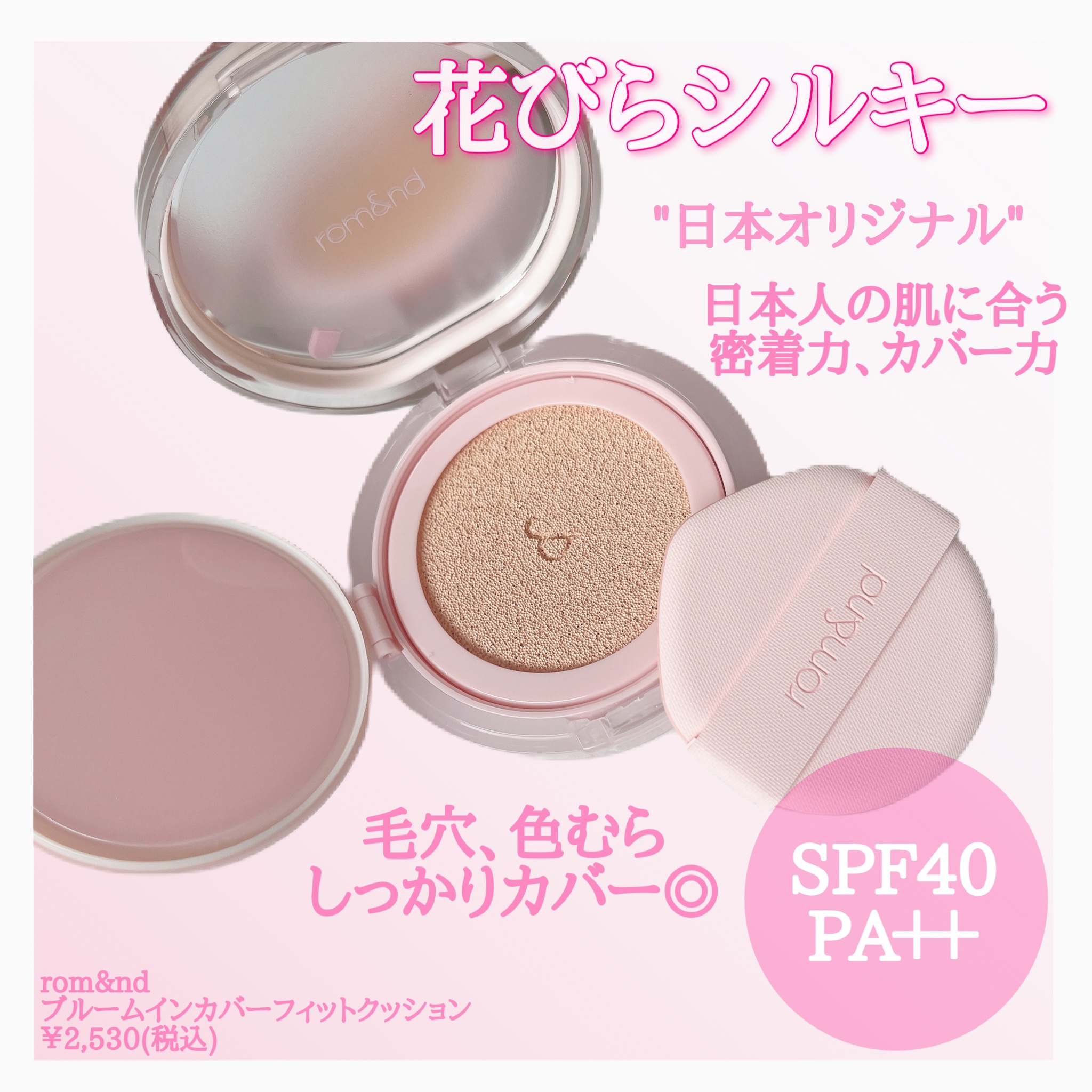 こんばんは🌙今回はrom&ndのブルームインカバーフィットクッション19Cピュアをご紹介します💗💗こちらは、ロムアンドのラッキーバッグに入っていました✨️外箱にひよんちゃんが載っていて、ひよんちゃんオススメの日本人向けに作られたクッションファ...