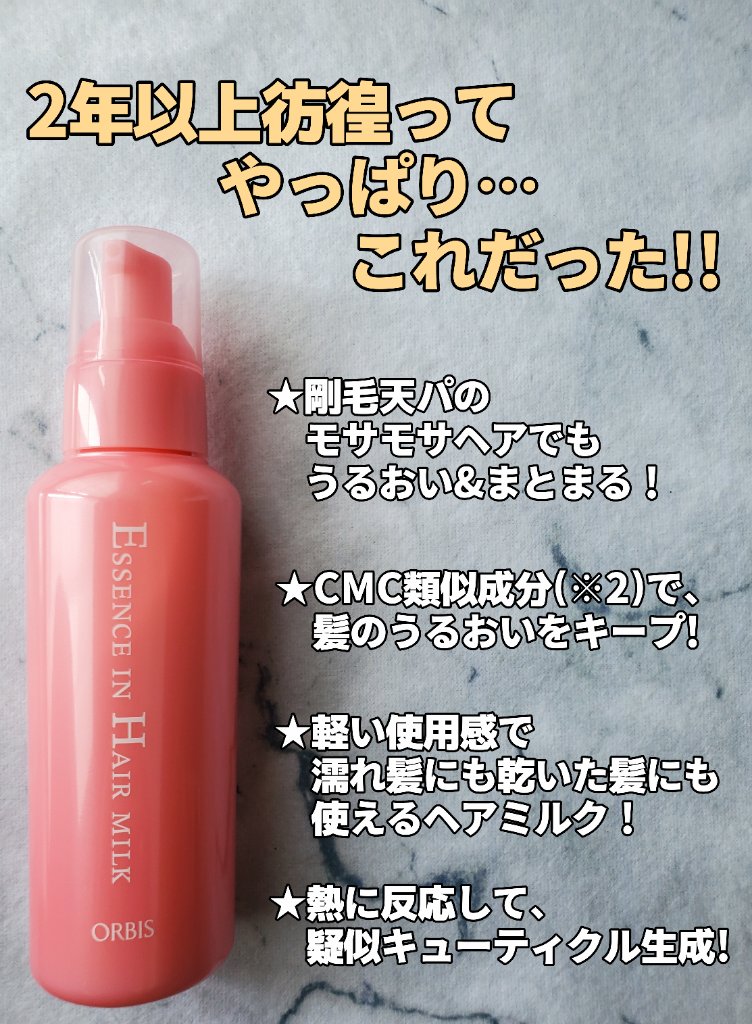 【エッセンスインヘアミルク】ミルクタイプの洗い流さないトリートメント🤍濡れた髪、乾いた髪どちらにも使えるヘアミルクです!軽めのテクスチャーで馴染みが早く、馴染ませた後もベタつかないのがいいです😌タオルドライ後の髪に使うと、ドライヤーの熱を味方...
