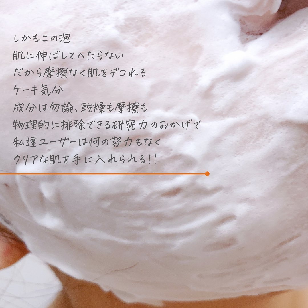 泡はキメがとても細かくてモッチモチ🥰 逆さにしても落ちないし 手で押し潰しても無くならない濃蜜泡☁️です! モチモチな濃蜜泡がそのまま出てくるから 忙しい朝でも摩擦レスで洗顔できます👏 毛穴より小さいマイクロ炭酸泡が 汚れや古い角質をオフしてくれるみたい だけど 実際洗浄力はかなり優しめで しっとりした洗い上がりでした🙌 洗顔として使うなら 乾燥肌さんや敏感肌さんにオススメ‼️ そしてこのクリスタルホイップは 泡パックやマッサージにも使えるので 混合肌で皮脂が気になる私は 泡パック&マッサージとして使ってます💓 高濃度炭酸でじんわり温かくなるし👏 濃密泡のおかげであまり摩擦をかけずに マッサージできるからオススメ✨ 泡パックでは泡を全顔に乗せて60秒 全然泡がヘタらないのでしっかりパックできる💓 しかも温かいから今の季節にちょうど良い😍