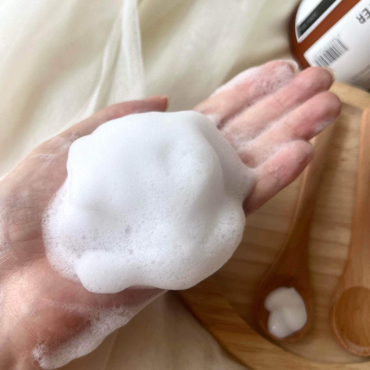 限定のキンモクセイの香りです。やさしく甘いキンモクセイが、寝るときもつづくくらい香ります笑 泡立ちのよいシャンプーで、頭皮と髪の汚れをスッキリと洗い流してくれますが、髪がギシギシときしむことはありませんでした。 オーガニック成分(シアバター、アルガンオイル、グリーナッツオイル、マルラオイル)配合のためか少しオイル感があり、洗い上がりがしっとりまとまる感じがあります。