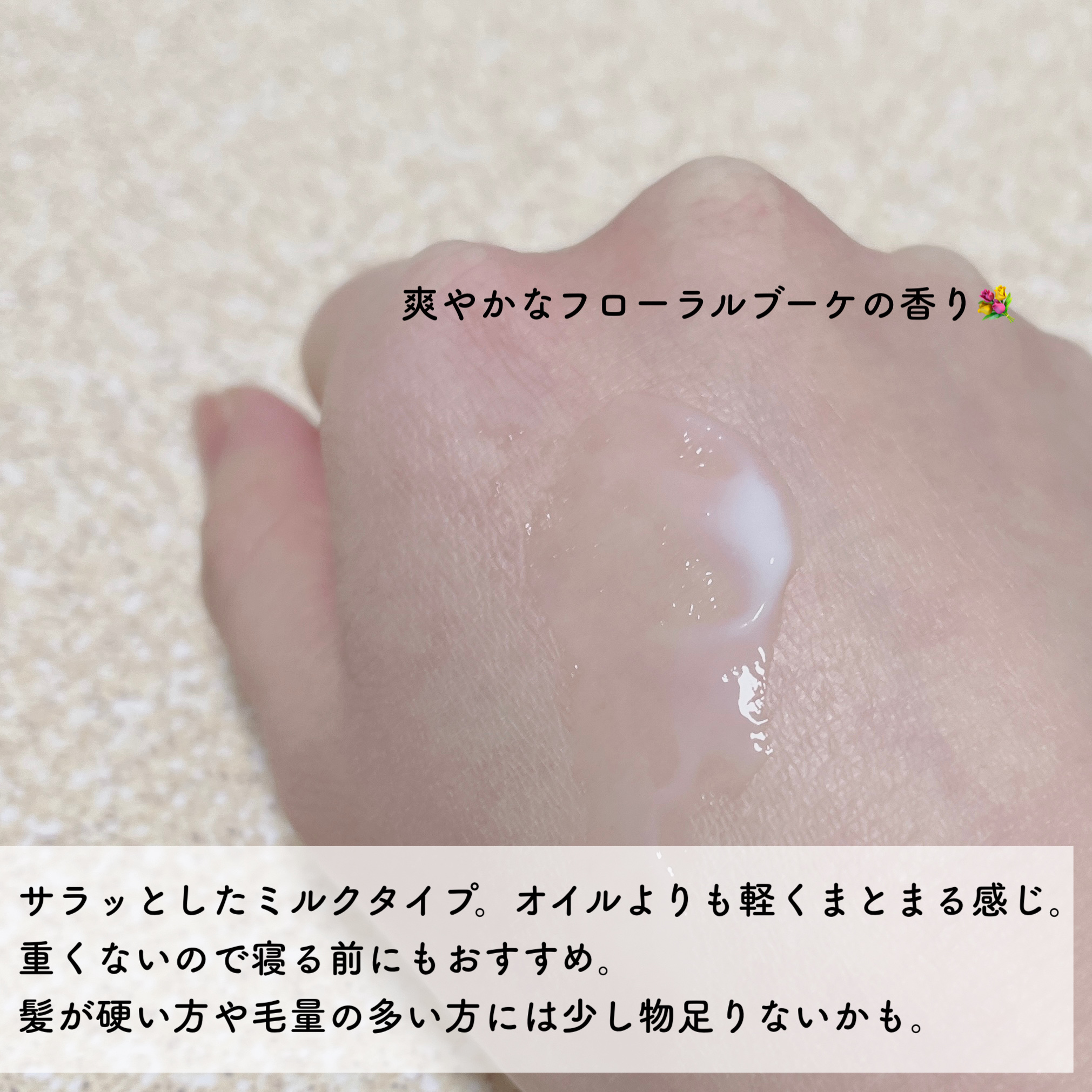 | ヘアケア・スタイリングランキング第6位 | 普通〜太めの髪用のミルク。とにかく香りが甘くて良い匂いで髪のまとまりが出ていい感じです😆 | 詳細を見る | |