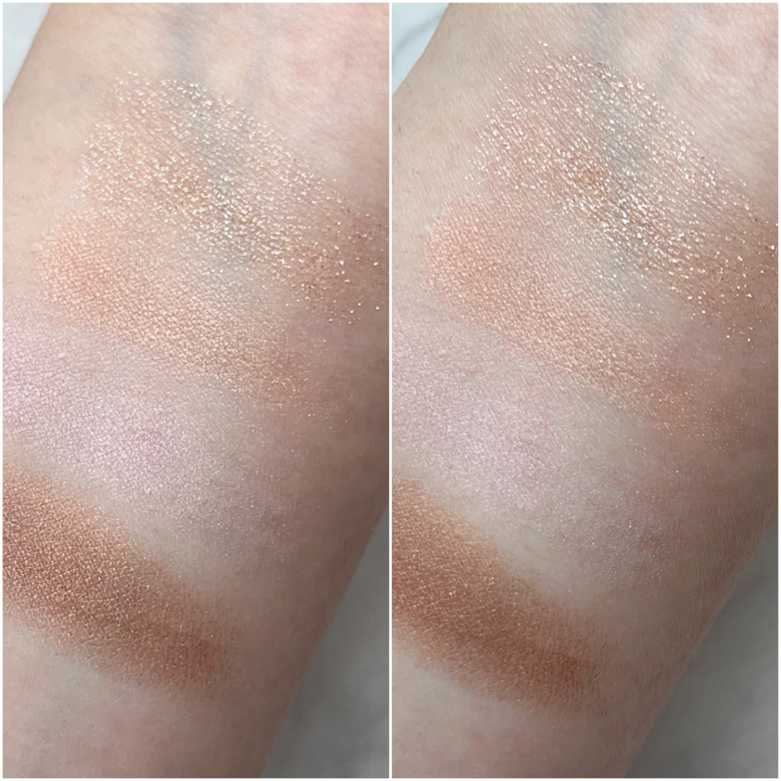 トムフォード アイ カラー クォード 02S ローズ ベール(限定) ¥12,980 これ本当に可愛いの🥹パレットで見ても可愛いけど塗ると更に可愛い。 マットは驚くほど粒子が細かくて発色が良い🙆♀️ 粉感を一切感じない仕上がりで、まぶたが着色されたかのように滑らかに色づきます🫶🤍 私は特に右上が好き!淡いコーラルピンクのベースにゴールドラメが煌めいて本当に綺麗💭💖 涙袋に入れてもツヤツヤキラキラな仕上がりになって可愛かったです🎀