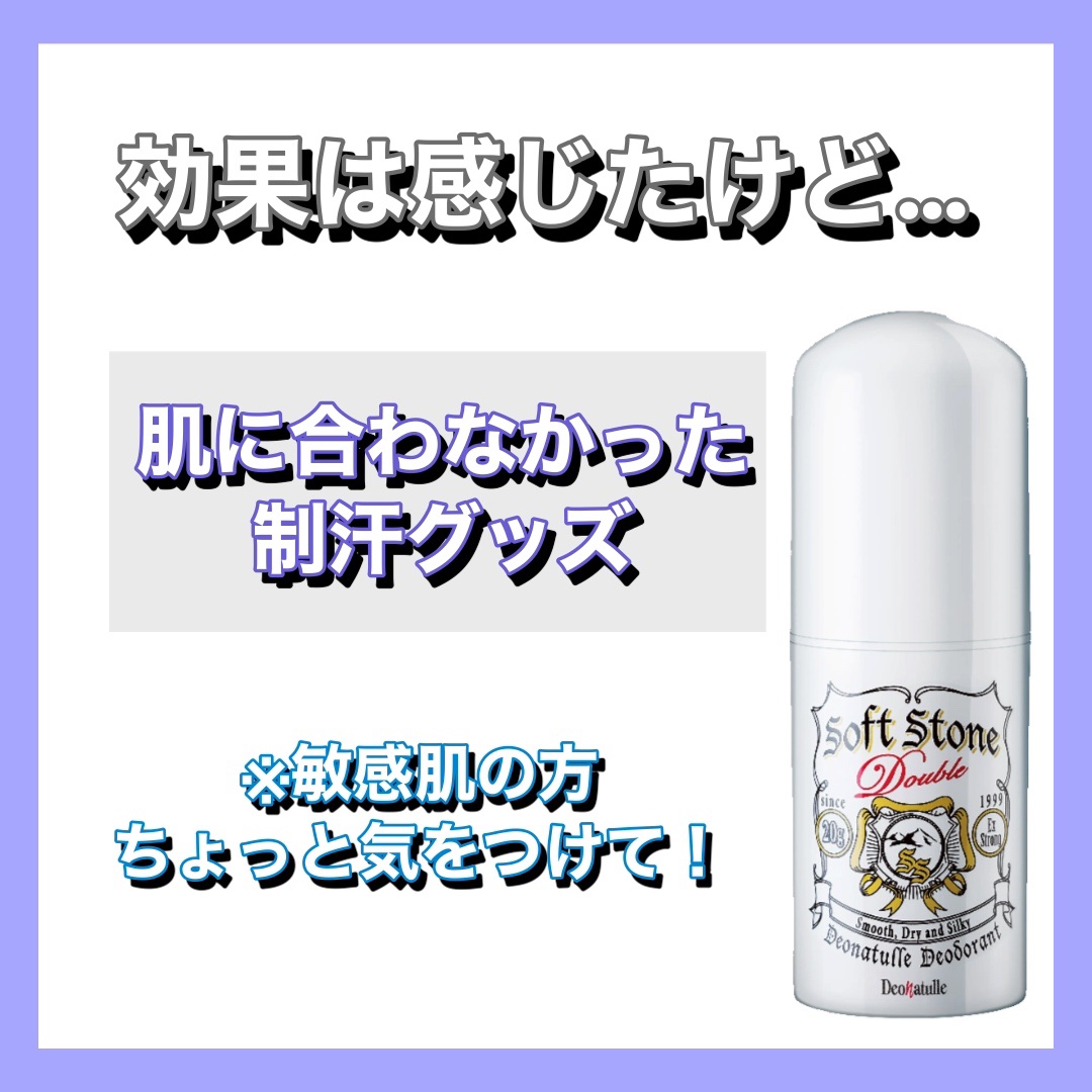 肌に優しい🌼 制汗アルミニウム塩(制汗効果のある成分)不使用で弱酸性、保湿成分もあり本当に肌に優しい。 せっけんの香りが良い🙌🏻 なんか制汗剤って汗をごまかすためにドギツい香りだったり化学的な香りだったりするやつがあるけどこれは本当にさわやかな石けんの香り。 汗をかいた後も効果を発揮する💖 汗臭くなった後塗っても手遅れ!みたいなのたくさんあるんだけどこれは汗をかいてから塗っても大丈夫🌷