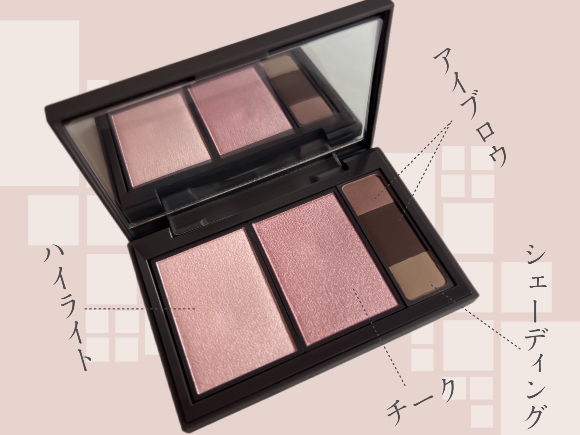 ハイライト・チーク・アイシャドウ・アイブロウとして使えるオールインワンパレットはすごい! パーソナルカラーのプロが監修した絶妙な配色で、ブルベ冬の診断を受けている私も使ってみて、これはドンピシャ!という気持ちです🌠 冬パレットは青みピンクがメインの透明感ある上品で洗練された色味