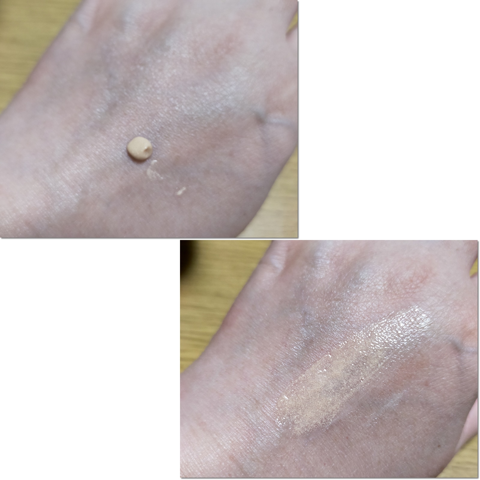 - 水、BG、エチルヘキサン酸セテアリル、酸化チタン、1,2-ヘキサンジオール、パンテノール、水添野菜油、ベヘニルアルコール、タルク、セテアリルアルコール、ステアリン酸、(ジメチコン/ビニルジメチコン)クロスポリマー、カルボマー、トロメタミン、アラントイン、キサンタンガム、エチルヘキシルグリセリン、ポリアクリレートクロスポリマー-6、パントラクトン、ヒマワリ種子油、グリセリン、t-ブタノール、加水分解コラーゲン、シロバナルーピン種子エキス、マコンブエキス、アロエベラ葉エキス、スミレ花エキス、ヤマノイモ根エキス、ウルムスダビディアナ根エキス、トコフェロール、EDTA-2Na、酸化鉄