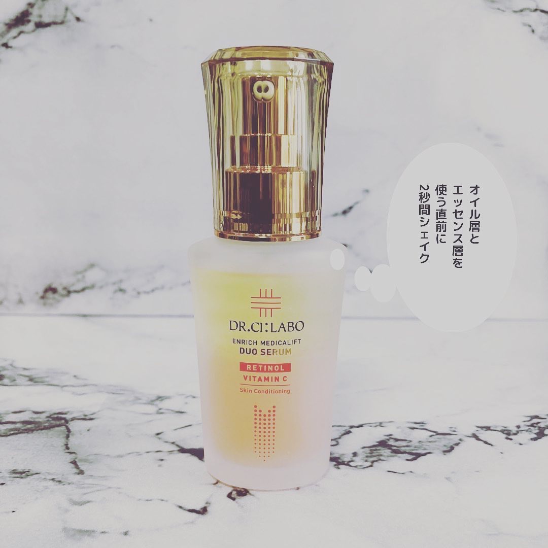 2層式になっていて2秒間シェイクして使う新感覚美容液です🧴 純粋レチノール*1(ハリ・弾力)×高浸透ビタミンC(APPS)*2(うるおい・毛穴・キメ・くすみ) 肌表面がうるおって毛穴が目立ちにくくなるところと、キメが整って肌の内側*3からのハリを実感できるところが大好きです🤍