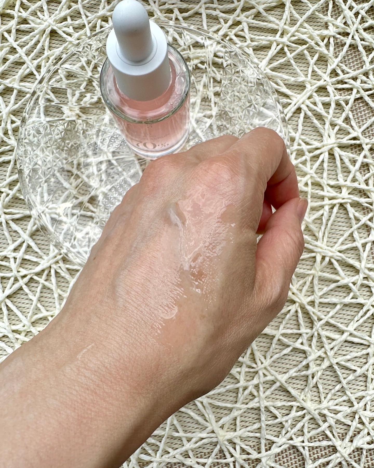 | スルスルっと伸びて、肌になじむとほんのりツヤ感を感じます。 後肌はさらり。 | 詳細を見る | ||