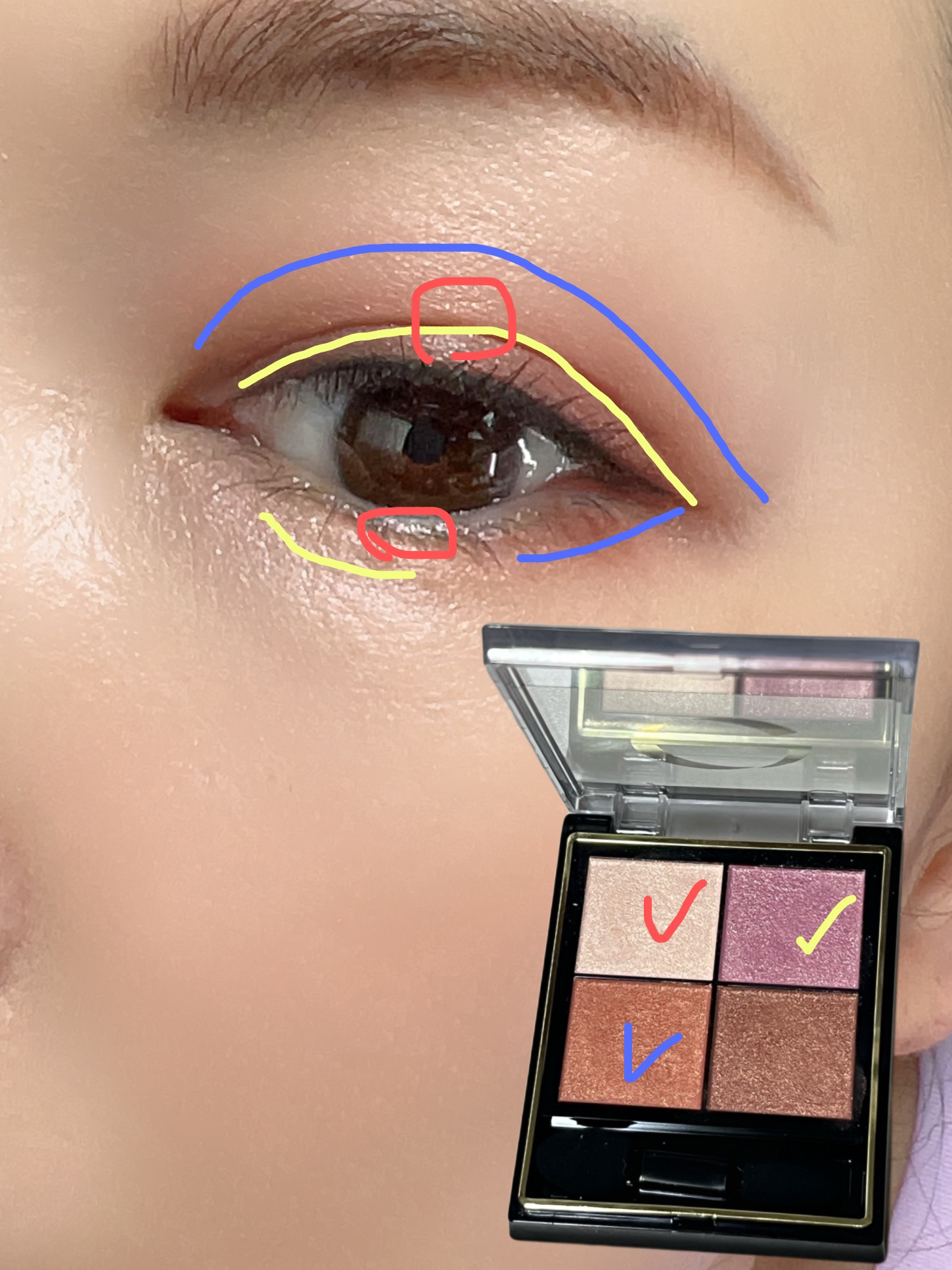 オレンジを感じる薄いピンク 薄いピンクに少しパープル感 使うお色によってブルベさんもイエベさんもどちらもOKだと思いまます。 右上の少しパープルが入っているピンクが可愛い♡ 涙袋にもピッタリです♡