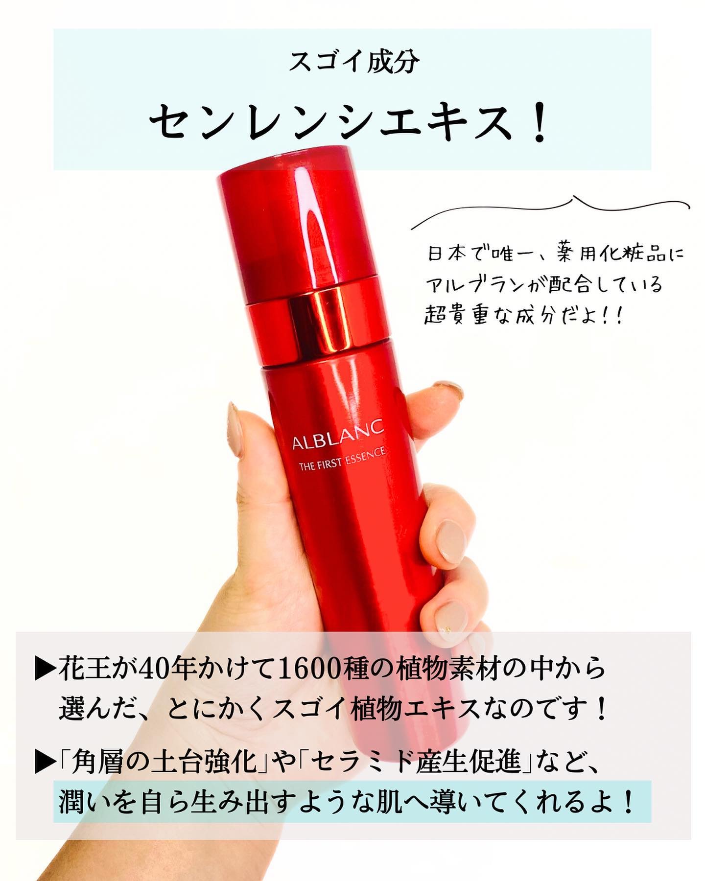 赤いボトルが美しいアルブランザファーストエッセンス♦️シミ・ソバカスを防いで※明るい肌に導く「カモミラET(有効成分)」が配合されています✨(※メラニンの生成を抑え、シミ・ソバカスを防ぐ)洗顔後1番最初に使う炭酸※泡の美容液でふわとろな溶ける...