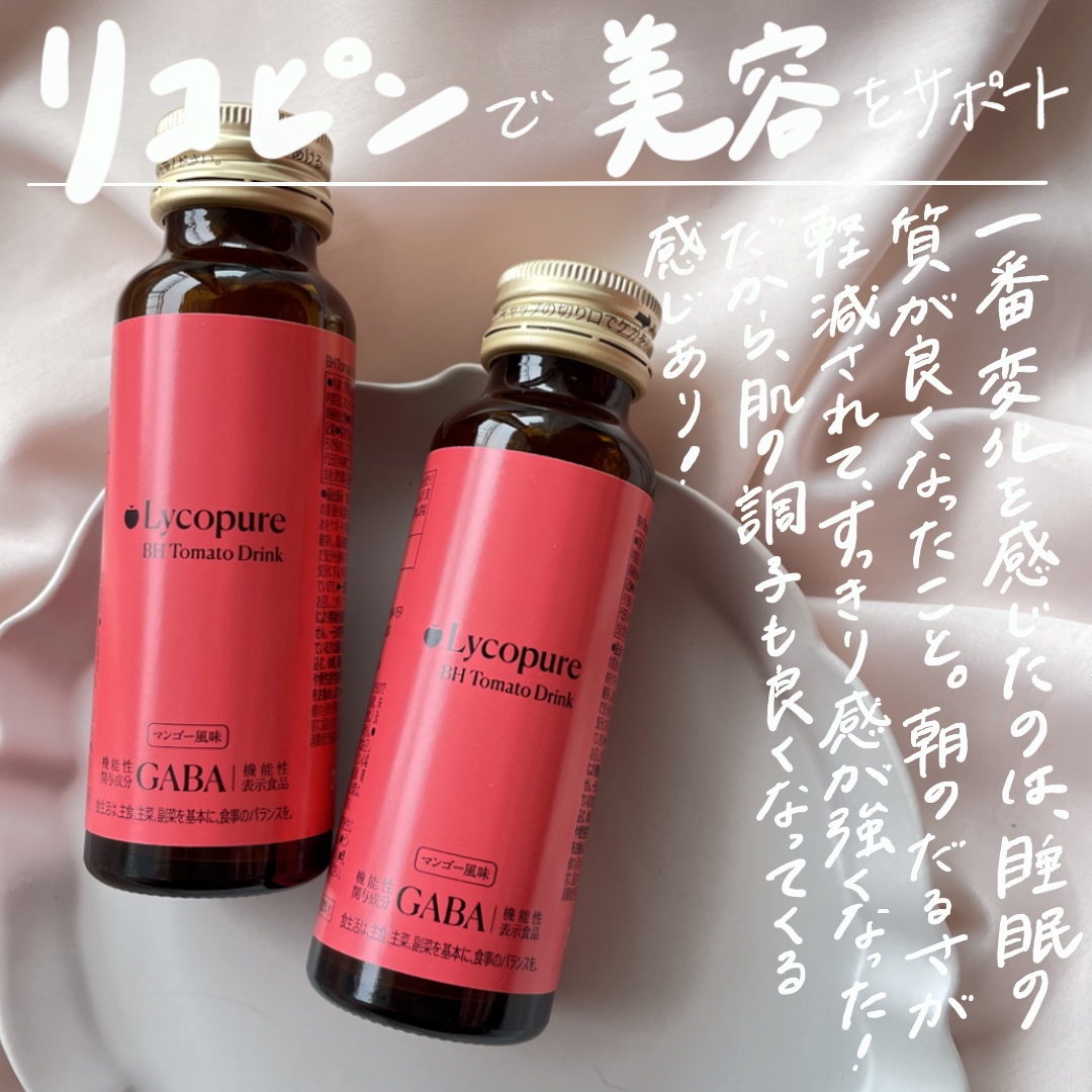 リコピュアBH Tomato🍅は、先進的な農業テクノロジーにより開発された、甘く、酸味バランスが良く、濃縮された高栄養価のミニトマトです。 通常のトマトの約4倍のGABAを含み、ストレスの緩和・睡眠の質向上・肌の弾力の維持をサポートします。 BH Tomatoの赤が印象的です。 ドリンクタイプはマンゴー風味です。飲んですぐはトマトの味が来て、マンゴーの風味を感じました。 サプリメントは1袋で30日分です。 1回2粒です。ソフトカプセルタイプなので、難なく飲めますね。