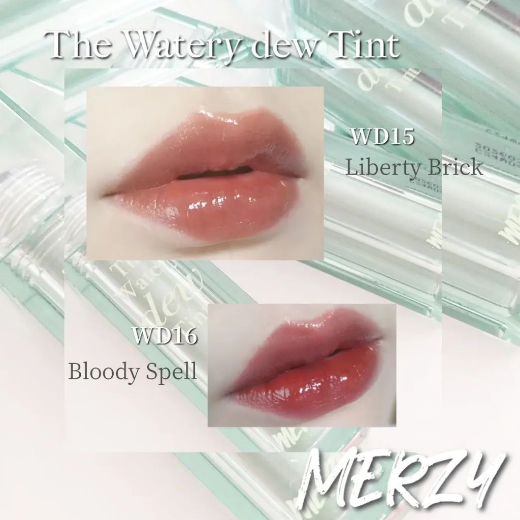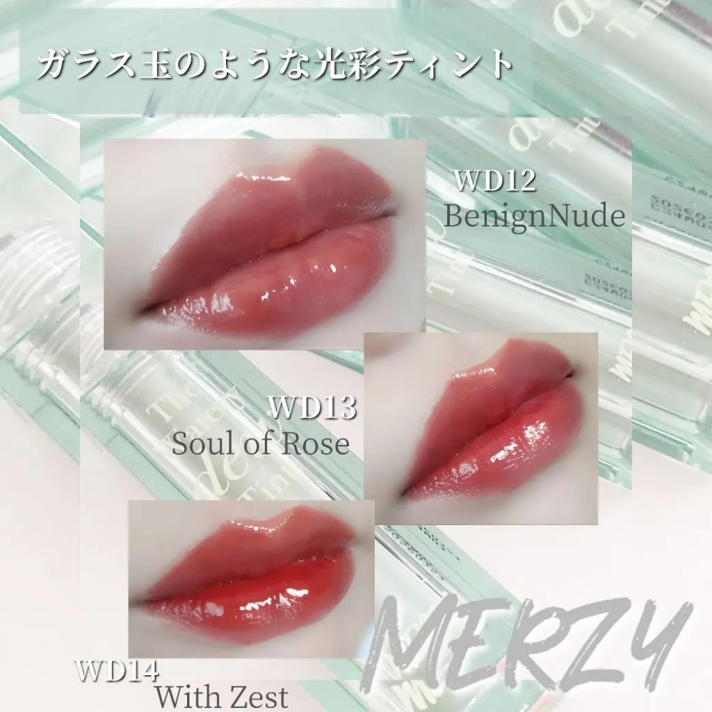 \まるでガラス玉🫧華やかな水光ティント💄/♡MERZYTheWaterydewTintめちゃくちゃ色持ちがいいMERZYの"ちゅるんリップ"❣️ベタつかず、さらっとしてるのに、ちゅるんちゅるんの水晶みたいな光沢感がとってもきれい💖ひと塗りする...